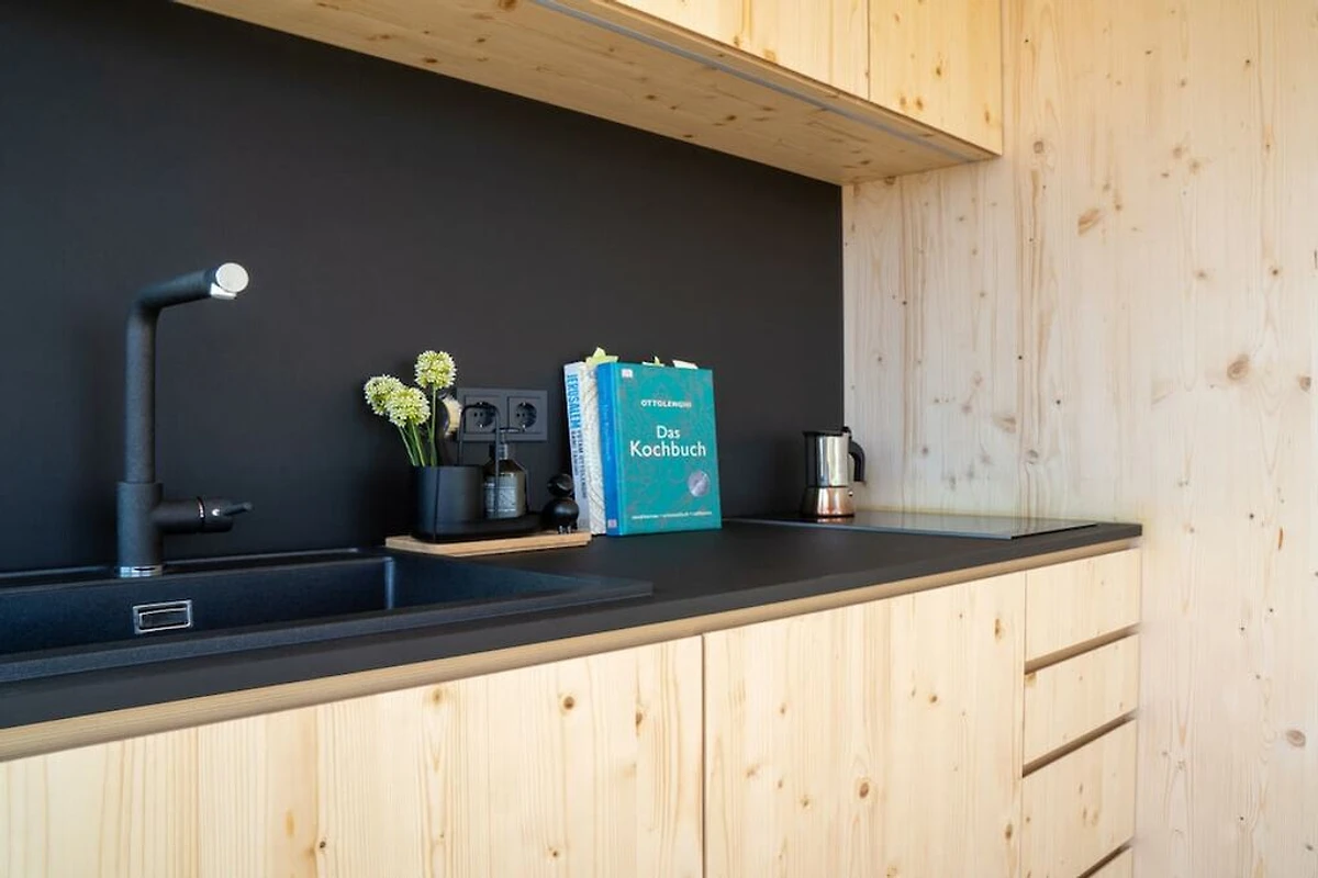 Het Baltic Sea Tiny House is een moderne boomhut die ongeveer vijf meter boven de weidebodem hangt – midden in het natuurparadijs Wangels in Sleeswijk-Holstein. De 25 m² grote accommodatie beschikt over stijlvol Scandinavisch design, een comfortabel tweepersoonsbed, airconditioning, snelle wifi, een volledig uitgeruste keuken en een luxe badkamer met douche en toilet. Grote panoramaramen brengen de natuur rechtstreeks uw woonkamer binnen. Op het terras van 16 m² kunt u genieten van absolute rust en stilte – met uitzicht op het groen. Perfect voor een ontspannen uitje met z'n tweeën!