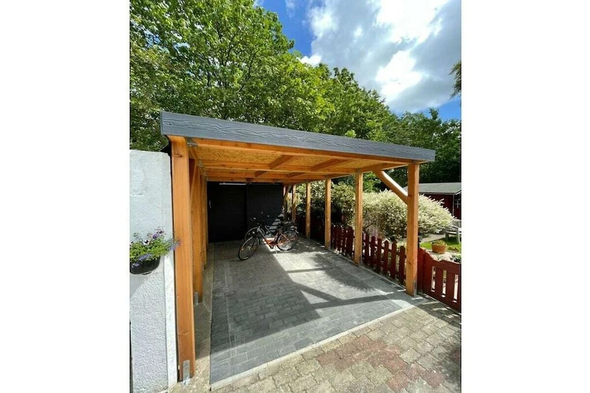 In onze nieuw gebouwde carport vindt u een moderne parkeerplaats voor uw auto en een afsluitbare fietsenstalling. Er is ook een wallbox-laadstation beschikbaar voor het opladen van uw hybride of elektrische auto.