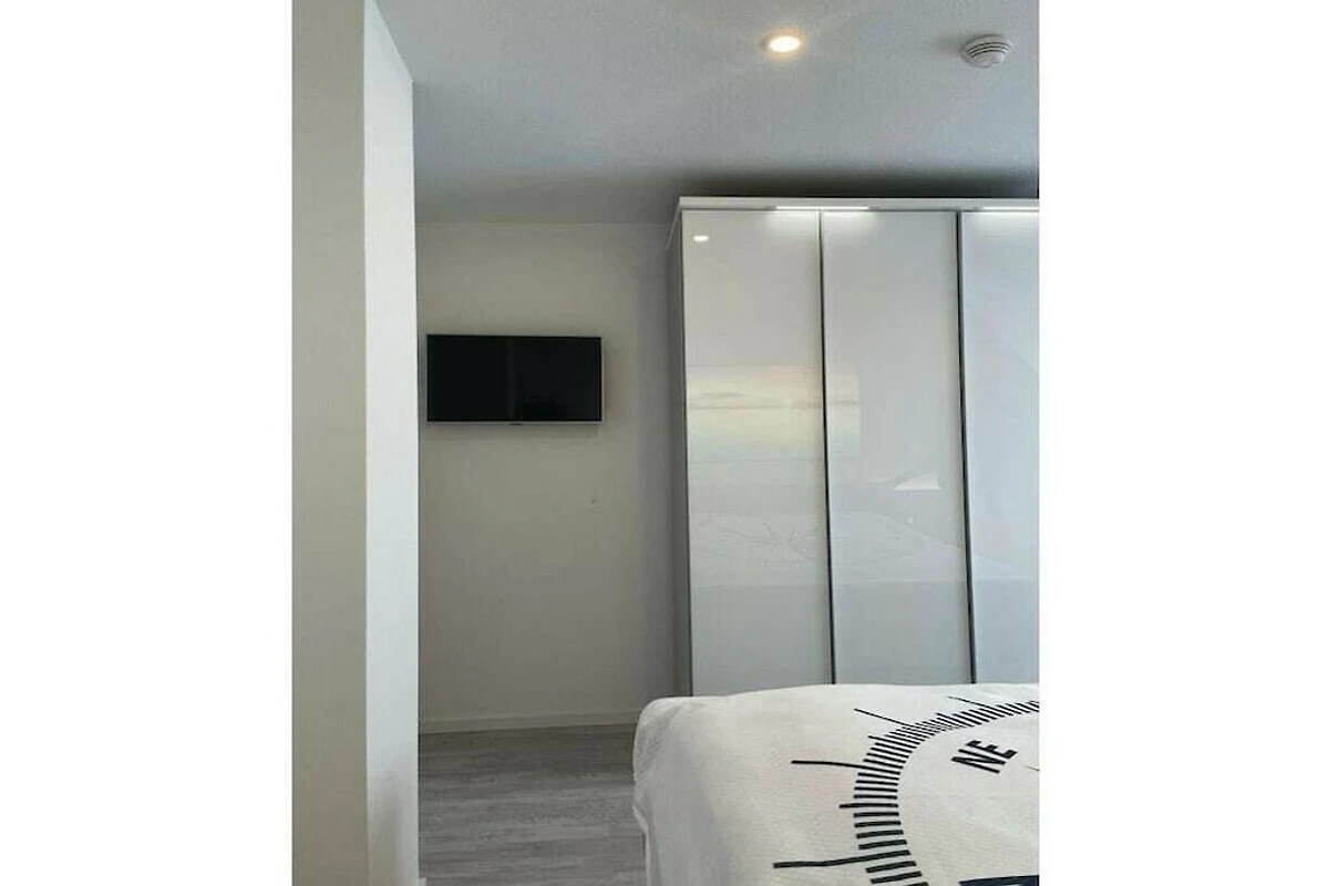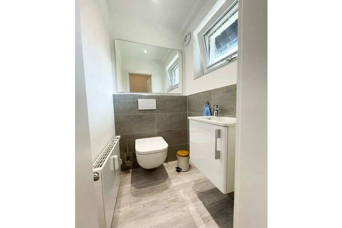 Op de 1e etage: (hal(), slaapkamer(, , 2-pers. bed, 2-pers. bed, TV), slaapkamer(, , 2-pers. bed, TV), badkamer(, , toilet, ligbad, douche, douche, wastafel, wasmachine, verwarming, haardroger))