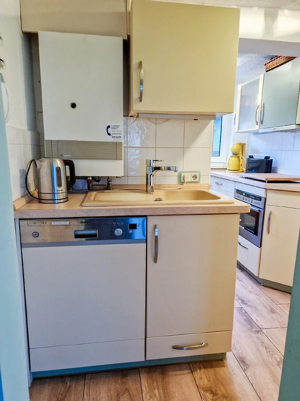 * Keuken met vaatwasser, oven met magnetron, fornuis, koelkast met vriesvak, koffiezetapparaat, broodrooster & waterkoker