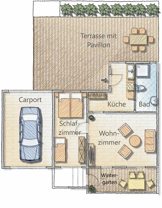 * Carport direct aan het huis – meer parkeergelegenheid op het terrein