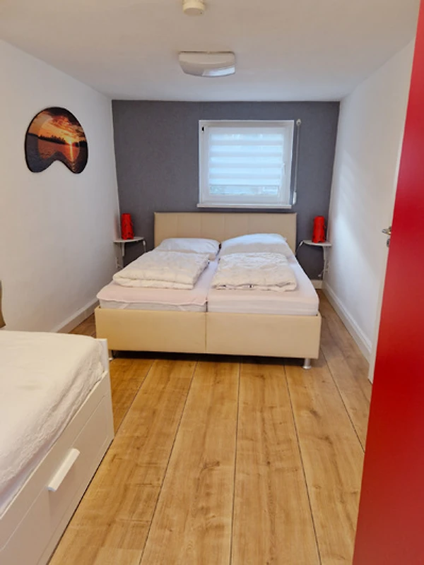 * Slaapkamer met een groot tweepersoonsbed, een uitschuifbaar tweepersoonsbed & kledingkast