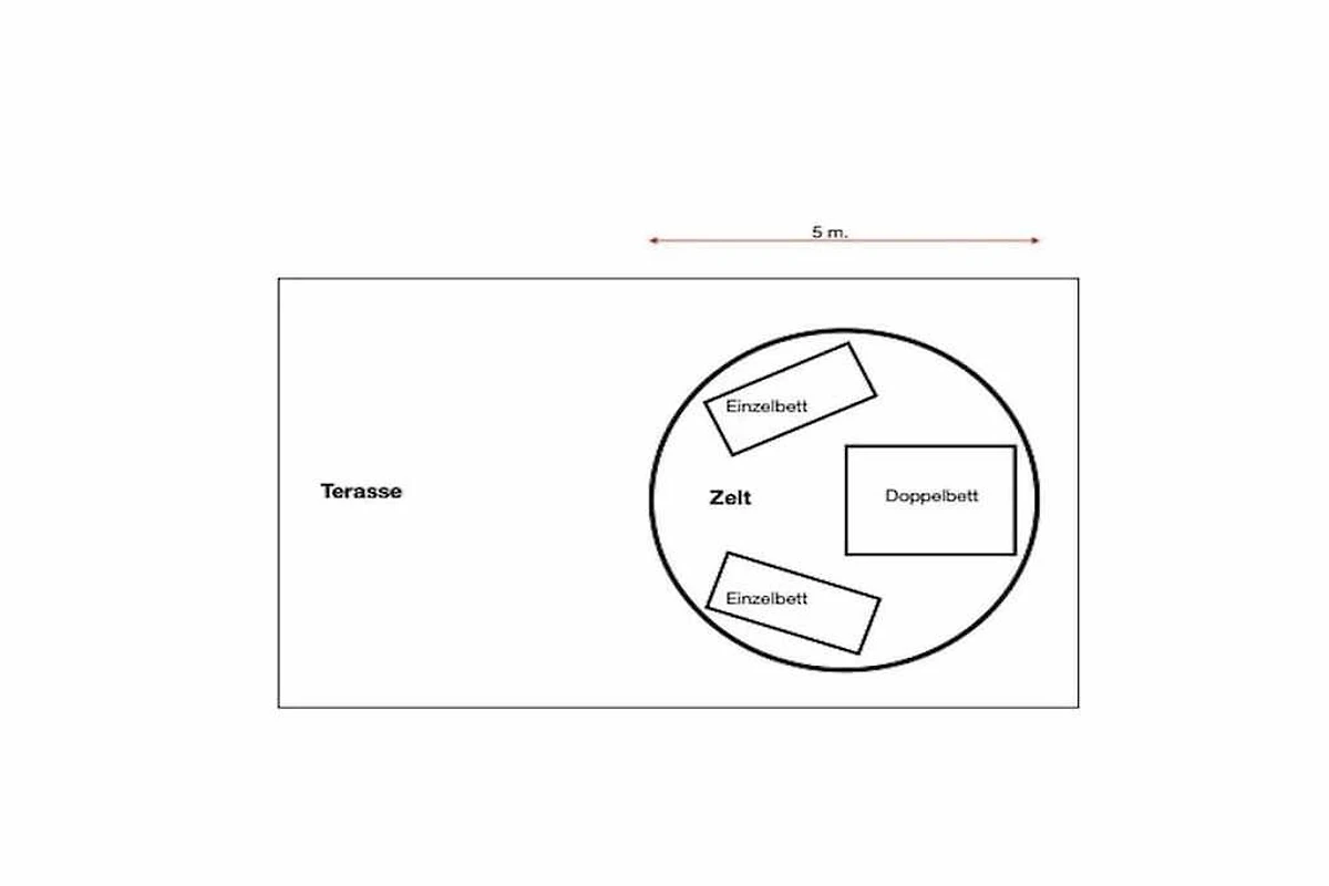 De douches en toiletten (privé) bevinden zich naast de tent en het zwembad ligt op ongeveer 50 meter afstand van de tent.