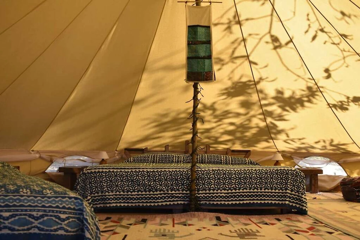De tent beschikt over een tweepersoonsbed en, op verzoek, twee eenpersoonsbedden. Er liggen tapijten op de vloer en er zijn elektriciteits- en wateraansluitingen. Het terras met uitzicht op de vallei is voorzien van een eettafel met stoelen, een parasol en ligstoelen.