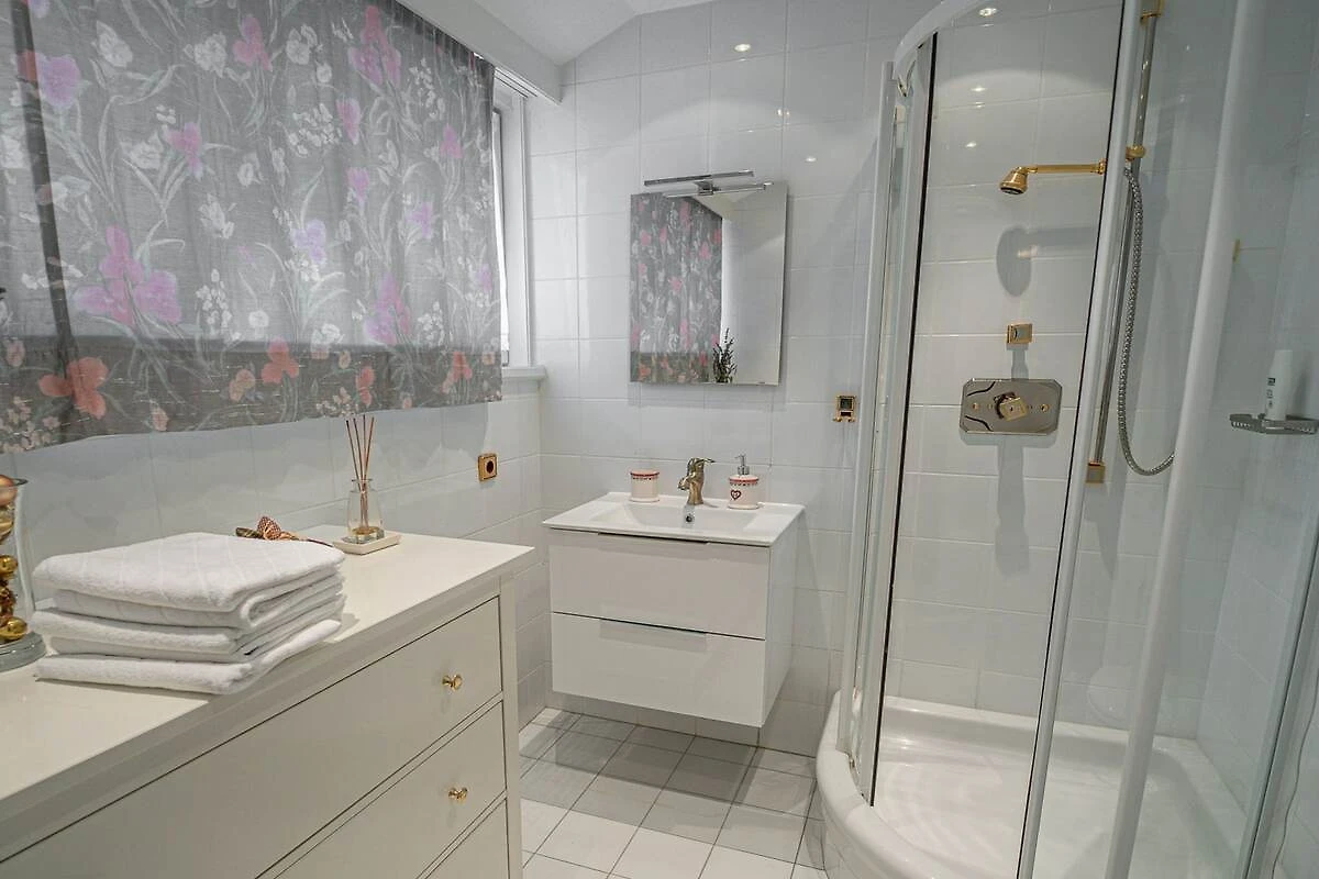 This seven-bedroom can accommodate up to sixteen guests. It features a Flat screen TV and is combined with a living room and kitchen. The private bathroom is equipped with a shower and toilet.