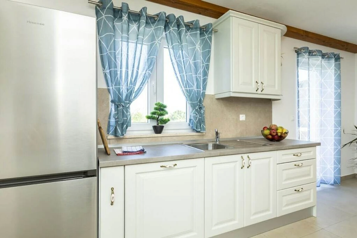 Het huis ligt in een afgelegen deel van een klein en rustig dorp, omgeven door prachtig groen met uitzicht op zee. Het is een uitstekende keuze voor gezinnen die hun vakantie in alle privacy en privacy willen doorbrengen op een terrein van 600 vierkante meter met een zwembad en een zonneterras.