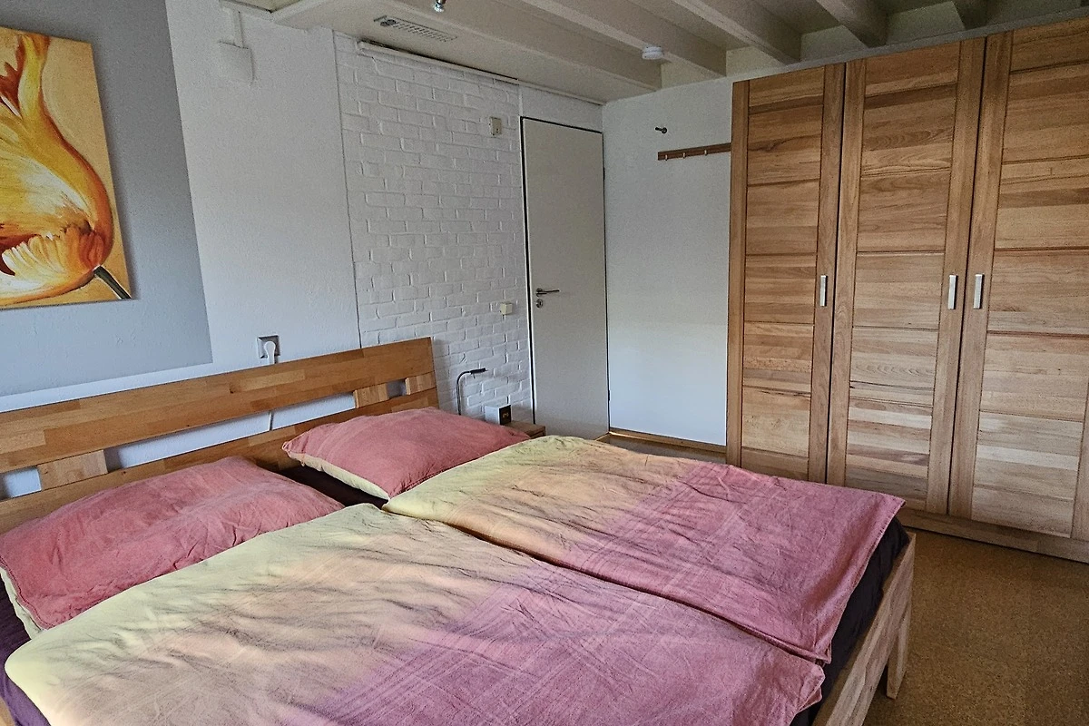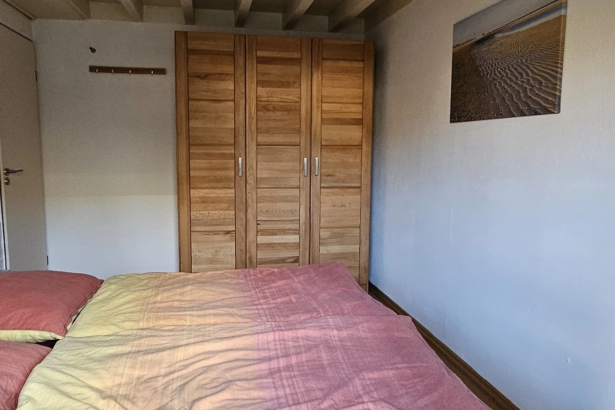 Slaapkamer met tweepersoonsbed (2x 90cmx200cm matrassen), nachtkastjes, kledingkast