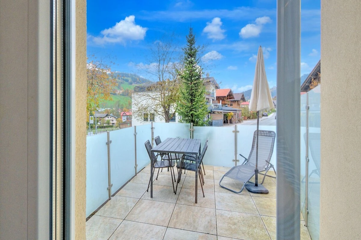 Binnen is het appartement licht, modern en ruim, met twee comfortabele slaapkamers, ideaal voor gezinnen of vrienden. De open woonkamer loopt naadloos over in een volledig uitgeruste keuken, compleet met een eettafel en kleurrijke stoelen, waardoor een warme ruimte ontstaat om te ontspannen, te koken en verhalen te delen na een avontuurlijke dag. De badkamer beschikt over een eigen infraroodsauna, voor een oase van rust, terwijl het balkon een sereen uitzicht biedt op het omliggende alpenlandschap.