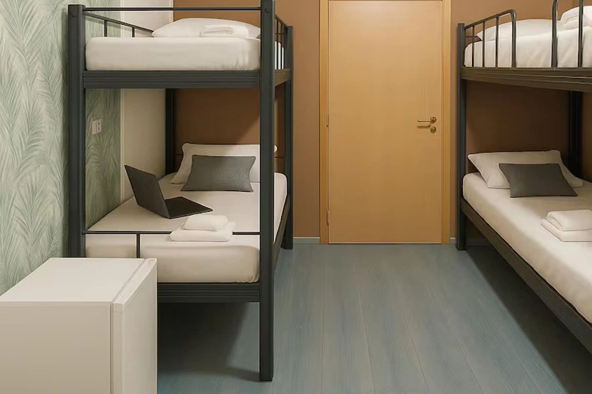 This quadruple-bedroom can accommodate up to four guests. It features an SAT/flat-screen TV and a safety deposit box. The private bathroom is equipped with a shower and toilet.