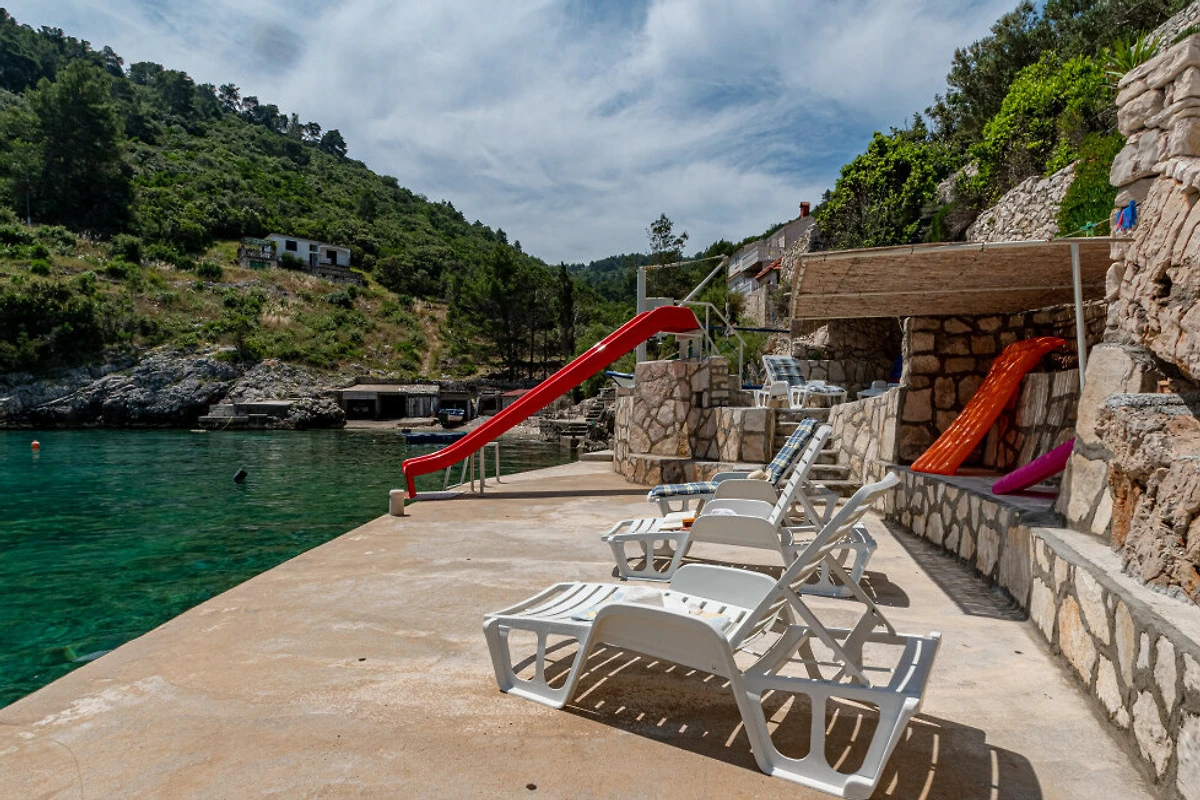 De woning bevindt zich op 10 m van het rotsstrand "Crnja Luka", 50 m van het zandstrand "Crnja Luka", 6 km van het dorp "Blato", 6 km van de supermarkt "Blato", 150 km van de luchthaven "Dubrovnik" en is gelegen in een gebied met de volgende kenmerken goed bereikbare wijk zone en vlak aan zee.