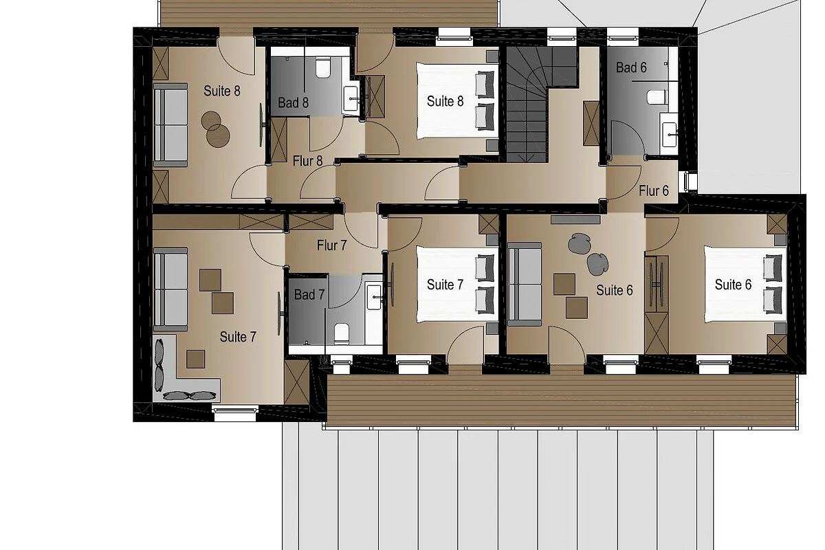 Premium Chalet. Balkon, Ski in, Ski out. 8 slaapkamer. 8 badkamer. 450m². 1 - 23 personen. Geniet van je vakantie in Kaprun in onze Serviced Luxury Chalet Evi en boek de best mogelijke prijs rechtstreeks bij de eigenaar.Ski-in/ski-out luxe chalet met hotelserviceOns Chalet Evi biedt plaats aan maximaal 23 personen op 450m². 8 aparte slaapkamers, elk met een eigen badkamer en een ruime lounge maken het chalet tot een echt alpine toevluchtsoord!Veel hout, fijne stoffen (van Karl Weber Interior Design ter plaatse) en een warm kleurconcept geven het chalet een vleugje alpine gezelligheid - gecombineerd met een moderne, stedelijke touch. Er werden geen compromissen gesloten op het gebied van inrichting en uitrusting: massief houten meubelmakers, eersteklas binnenveringbedden, Sonos-geluidssysteem in de woonkamers en nog veel meer!Er zijn twee suites op de begane grond. In de gemeenschappelijke ruimte en de lounge kun je samen ontbijten en van gedachten wisselen over de avonturen die je hebt beleefd. Het terras biedt voldoende ruimte om te ontspannen en is uitgerust met massief houten timmermansmeubels, evenals lounge- en ligbedden.Op de eerste verdieping zijn er nog drie suites met balkon. De kamers zijn zeer liefdevol ingericht, comfortabel. Aantrekkelijk, tijdloos interieur, slaapcomfort, hoogwaardige tegels en steengoed in de badkamers en grote deuren, ramen en balkons - in de kamers voel je je direct zeer op je gemak.De drie suites op de tweede verdieping bieden ook een prachtig uitzicht op het bergpanorama en 's middags kunt u uw dierbaren op de piste op de balkons in de gaten houden. Er is ook een ruime skiruimte met een schoenendroger.De ruime gemeenschappelijke ruimte nodigt u uit om te genieten van een ontspannen ontbijt dat dagelijks wordt geserveerd door ons personeel. Een grote elektrische haard in de haardkamer zorgt voor gezellige avonden. En vanuit de wintertuin heeft u direct toegang tot het zonovergoten terras.Vanaf het ruime zonneterras heb je een geweldig uitzicht op het imposante bergdecor dat de Kitzsteinhorn-gletsjer omringt. Kracht, ruimte, rust - hier vind je een fijne plek om te vertoeven. Een parasol van 25 m² en een warmtestraler voor de koelere avonden zorgen voor aangenaam comfort. Het terras biedt plaats aan maximaal 20 personen en is uitgerust met massief houten schrijnwerkmeubels en lounge- en ligbedden.Als het te vroeg is om 's avonds naar bed te gaan, vindt u alles wat u nodig heeft voor gezellige en filosofische uurtjes in onze gezellige kelderbar.8 slaapkamers waarvan 7 deluxe suites & 1 tweepersoonskamer comfortDe deluxe suites zijn ruim met elk een oppervlakte van 40 m². In elke suite vindt u een knusse slaapkamer met een luxe tweepersoonsbed, een ruime woonkamer met een comfortabele slaapbank en een moderne badkamer. Op de balkons van de suites bevinden zich hoogwaardige zitgroepen. De suites op de bovenste verdieping zijn voorzien van airconditioning.De comfort tweepersoonskamer (25 m²) heeft een gezellige slaapkamer met een aparte bank en een modern ingerichte badkamer.Ons hart klopt voor de regio Kaprun / Zell am See. De Chalet Evi is uw centrale “hub” van waaruit u allerlei activiteiten kunt starten. De piste direct naast het chalet brengt je naar de gondel op de Schaufelberg. Van daaruit bereikt u het gletsjerskigebied Kitzsteinhorn in slechts 12 minuten en begint uw ski-ervaring.Na slechts 200 meter lopen bereikt u het centrum van Kaprun met tal van winkelmogelijkheden en een veelvoud aan culturele en gastronomische aanbiedingen.