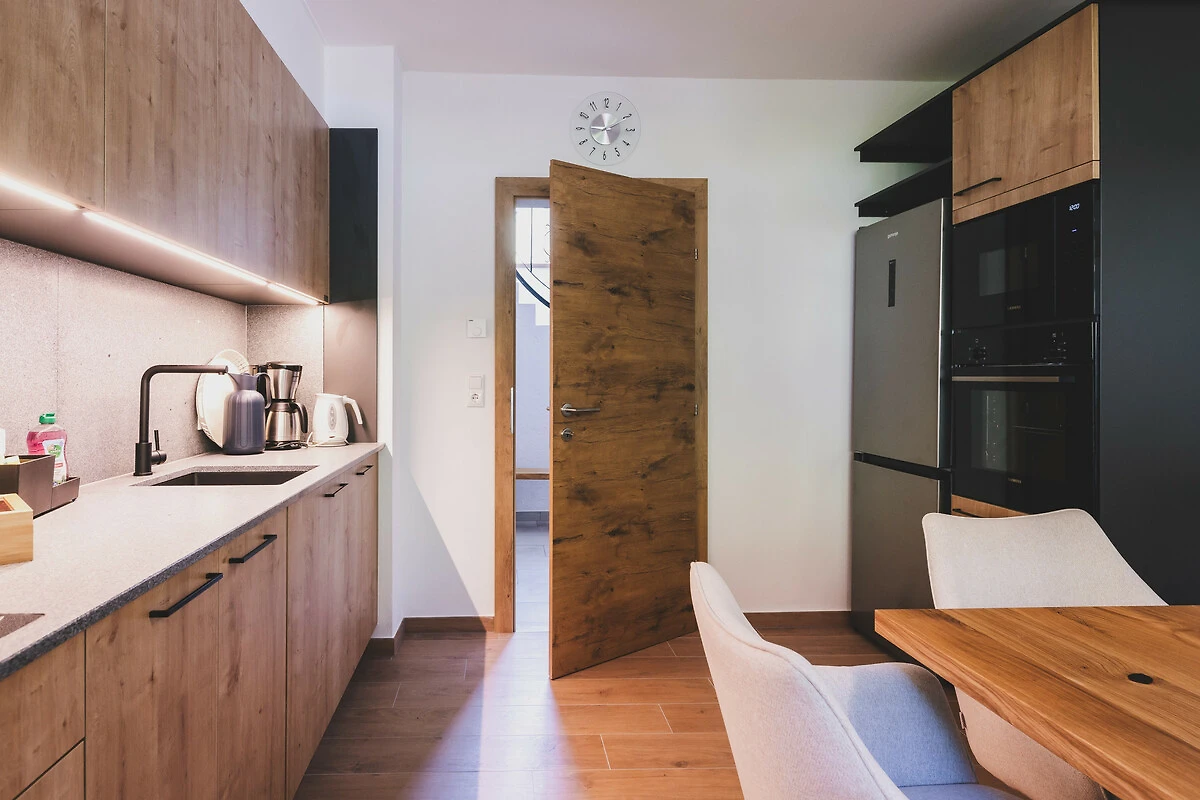 Superior Vakantiehuis. Tuin, ski-in / ski-out. 5 Slaapkamers, 3 Badkamers. 275m². Voor 1 – 14 personen. Beleef onvergetelijke dagen in Zell am See in ons Chalet CarinaChalet Carina biedt royale ruimte verdeeld over drie verdiepingen – perfect voor grote gezinnen of vriendengroepen die willen genieten van een ontspannen en actieve vakantie in de Oostenrijkse Alpen. Het huis is in 2025 volledig gerenoveerd en combineert traditionele alpenstijl met comfort en sfeervolle details.Op de begane grond bevindt zich een volledig uitgeruste keuken met oven, kookplaat, vaatwasser, grote koelkast en koffiemachine. In de gezellige zithoek kun je heerlijk ontbijten of ontspannen met een kopje koffie. Naast de keuken ligt een ruim eetgedeelte met voldoende plaats voor de hele groep – ideaal voor gezamenlijke diners, spelletjes of lange avonden samen. Vanuit de eetkamer heb je direct toegang tot de tuin. Ook op deze verdieping: een badkamer met douche en een apart toilet – handig bij volledige bezetting.Op de eerste verdieping bevinden zich vijf slaapkamers. Drie slaapkamers zijn voorzien van comfortabele tweepersoonsbedden, twee kamers combineren een tweepersoonsbed met een stapelbed – perfect voor gezinnen met kinderen. Elke slaapkamer beschikt over een eigen wastafel, wat het verblijf met meerdere personen extra comfortabel maakt. Daarnaast is er een apart toilet en een aparte douche. Drie slaapkamers hebben bovendien toegang tot het balkon, met prachtig uitzicht op Zell am See en de omliggende bergen – een fijne manier om de dag te beginnen.In het souterrain vind je een van de hoogtepunten van het chalet: een privékelderbar – ideaal voor gezellige avonden met muziek en een drankje. Aangrenzend is er een gezellige speel- en ontspanningsruimte waar je kunt relaxen of plezier maken – perfect na een skidag of bij slecht weer. In de zomer biedt de grote tuin volop ruimte om te zonnen of gewoon van de frisse berglucht te genieten.Voor je wintersportuitrusting is er een eigen skiberging beschikbaar. Wifi en parkeergelegenheid direct bij het huis zijn inbegrepen.De ligging van het huis maakt je verblijf extra comfortabel: de dichtstbijzijnde skipiste ligt op slechts 100 meter, en de bushalte met verbinding naar het centrum en de Schmittenhöhe ligt op slechts 50 meter afstand. De Zeller See is lopend bereikbaar – ideaal om te zwemmen, wandelen of een boottocht te maken. Het treinstation van Zell am See ligt op ongeveer 1,5 km afstand en de luchthaven van Salzburg op circa 90 km (ongeveer 1,5 uur rijden).Afstanden in één oogopslag: Skilift: ca. 100 m tot de dichtstbijzijnde piste Bushalte: ca. 50 m – directe verbinding naar centrum & Schmittenhöhe Zeller See: ca. 1 km – ideaal om te zwemmen, wandelen of varen Station Zell am See: ca. 1,5 km Luchthaven Salzburg: ca. 90 km (ongeveer 1,5 uur rijden)