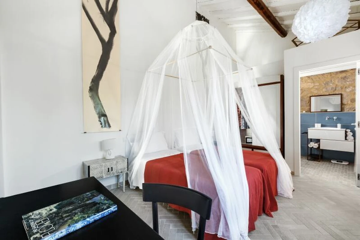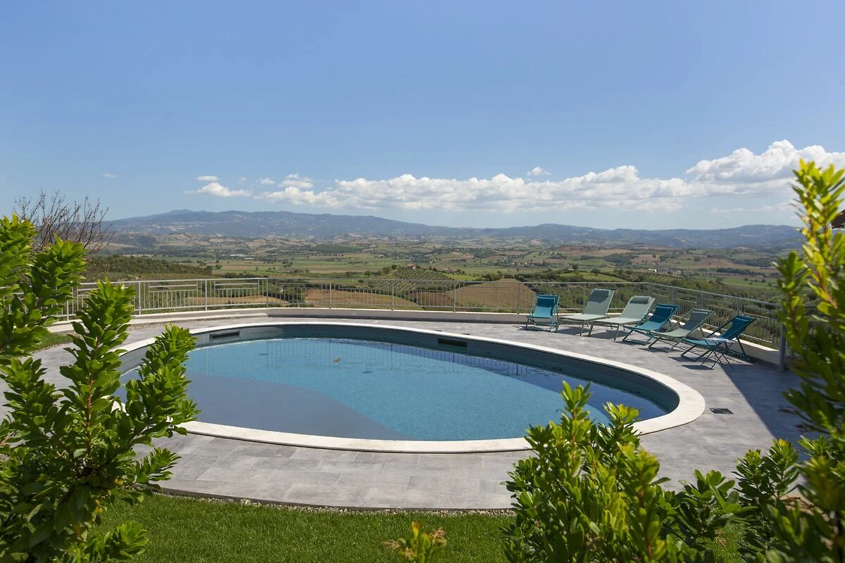 Het privézwembad van 5x8m met ontspanningsruimte bevindt zich op een prachtig panoramaterras met fantastisch uitzicht op de prachtige Toscaanse omgeving. Het zwembad is het hele jaar geopend en wordt in mei en september verwarmd.