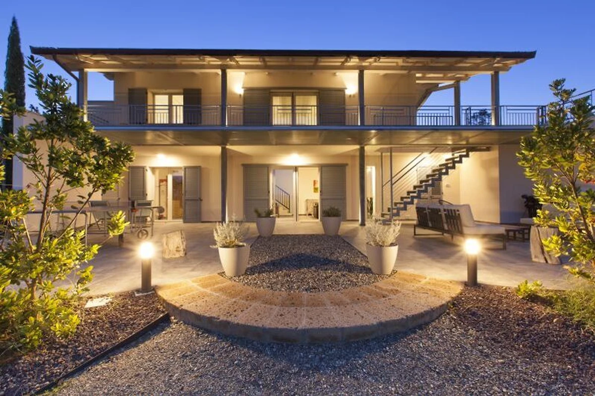 Het ruime huis is bedoeld voor maximaal 6 veeleisende gasten (drie slaapkamers – elk met en-suite badkamer) en valt op door vele bijzondere details: prachtige panoramaterrassen – verwarmbaar privézwembad, fitnessruimte en sauna, buitenleefruimtes met
