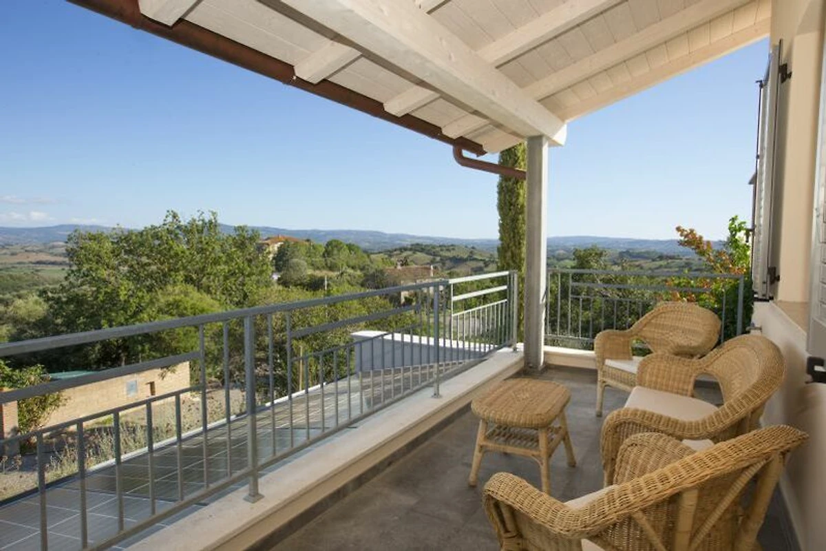 Heerlijke panoramische ligging in het achterland van de Maremma, nabij het dorp Marruchetti (2 km) en Campagnatico (11 km)