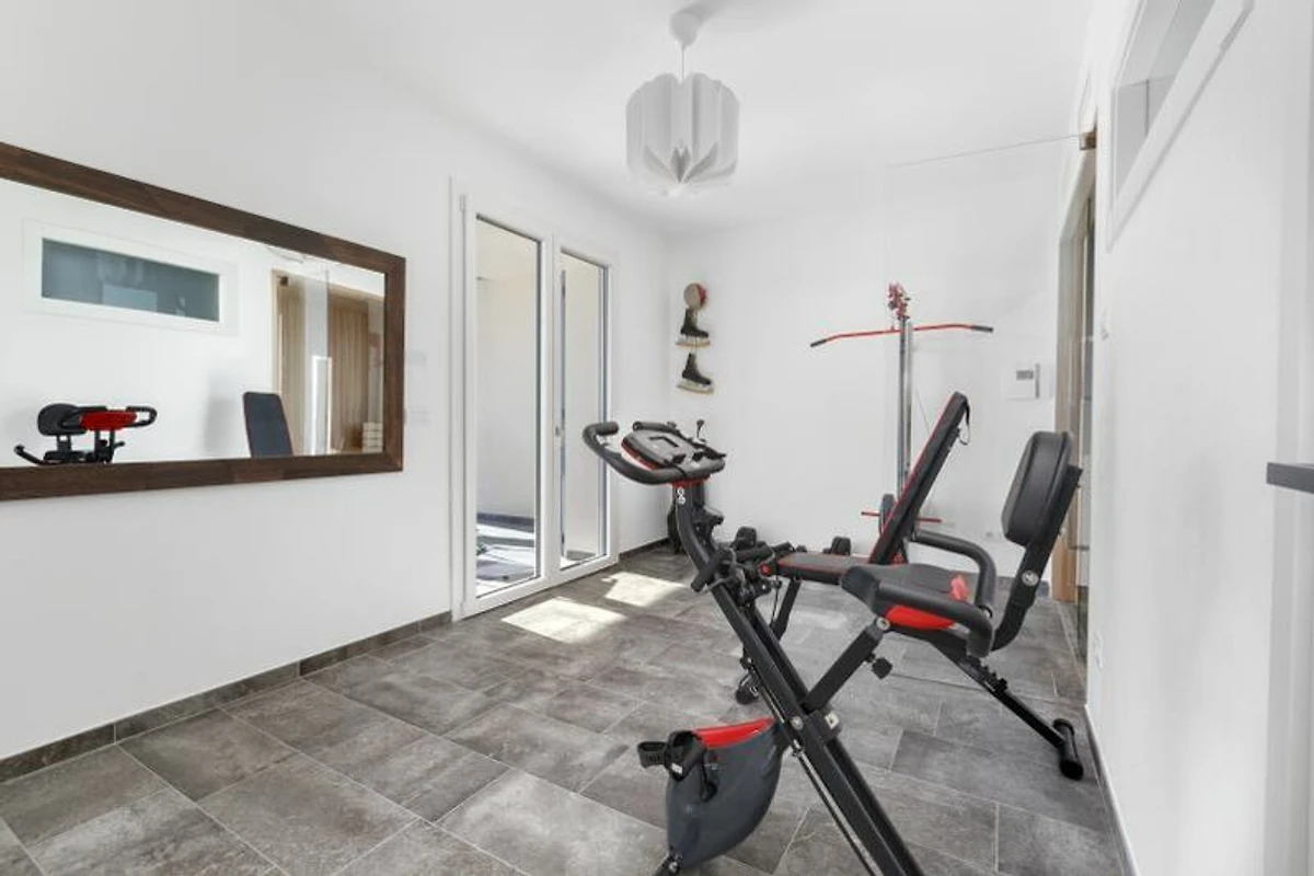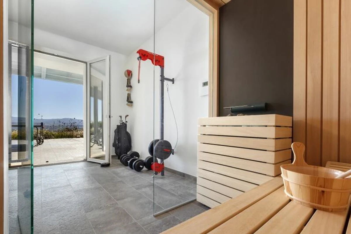 Geniet van de warme zon op het ruime panoramaterras of ontspan bij het privézwembad, omringd door comfortabele ligstoelen. Voor sportliefhebbers is er een fitnessruimte en een tafeltennistafel beschikbaar, het wellness-gedeelte wordt gecompleteerd door een sauna.