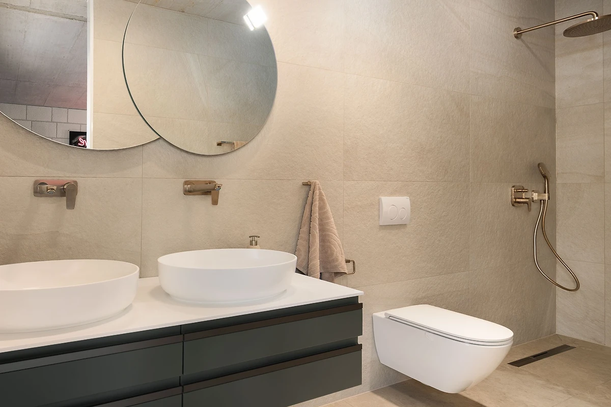 De open keuken, met inductie kookplaat, is uitgerust met koelkast, magnetron, oven, vriezer, vaatwasmachine, servies/bestek, keukengerei en koffiezetapparaat.