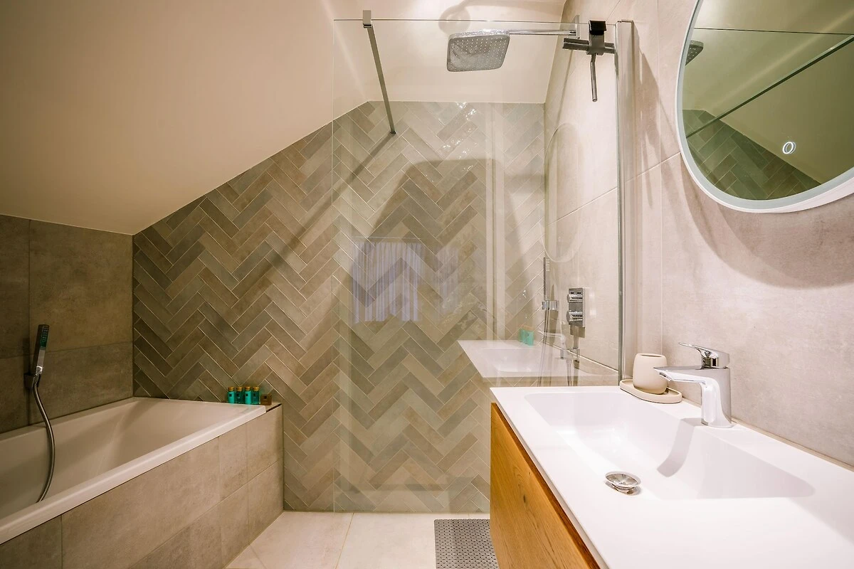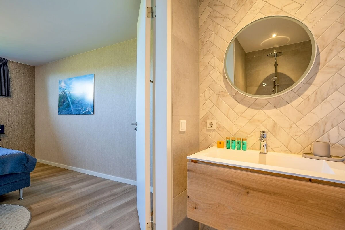 De souterrain biedt twee grote slaapkamers met een badkamer ensuite. De badkamers zijn hier voorzien van een ruime inloopdouche met rain shower en een badmeubel. Ook is het souterrain voorzien van een Finse sauna, geschikt voor 6-8 personen. Op de verdieping tref je twee slaapkamers, beide voorzien van een badkamer ensuite met een ruime inloopdouche met rainshower en een badmeubel. Eén van deze badkamers is ook uitgerust met een ligbad. Alle slaapkamers in het huis beschikken over comfortabele boxspringbedden en een smart TV.