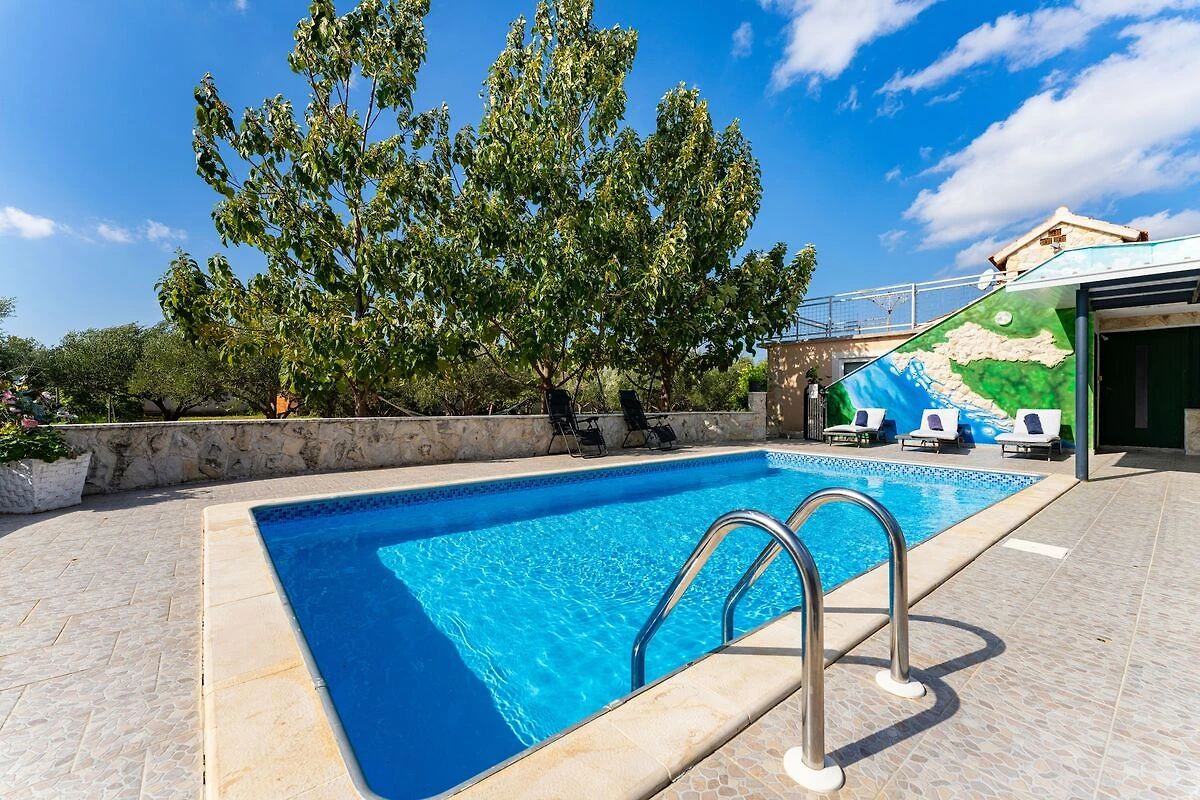 Deze rustieke vakantiewoning, gelegen in het rustige platteland in de buurt van Šibenik, is ook geschikt voor mensen met een mobiliteitsbeperking en biedt de perfecte ontsnapping voor wie op zoek is naar rust, ruimte en een vleugje authentieke Dalmatische charme. Omgeven door olijfboomgaarden en badend in de zon, is het een rustig toevluchtsoord waar u kunt ontspannen, weer contact kunt maken en kunt genieten van het langzamere tempo van het plattelandsleven. Dit charmante toevluchtsoord ligt op een ruim, volledig omheind terrein en biedt plaats aan maximaal tien gasten, waardoor het ideaal is voor gezinnen of groepen vrienden. Binnen straalt het huis warmte uit met zijn gezellige interieur, twee volledig uitgeruste keukens en uitnodigende leefruimtes. Elk van de vijf slaapkamers is smaakvol ingericht om een goede nachtrust te garanderen, terwijl de drie moderne badkamers een vleugje gemak en comfort toevoegen.