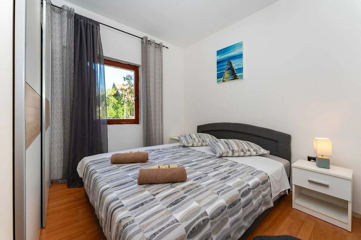 Dit charmante vakantiehuis, verscholen in het rustige platteland bij Šibenik, is het perfecte toevluchtsoord voor wie op zoek is naar rust, zon en een vleugje authentiek Dalmatisch leven. Omgeven door olijfboomgaarden en vogelgezang is dit een plek waar de tijd langzamer gaat en de dagen gevuld zijn met eenvoudige geneugten: koffie op het terras, een duik in het zwembad en rustige avonden onder de sterren.