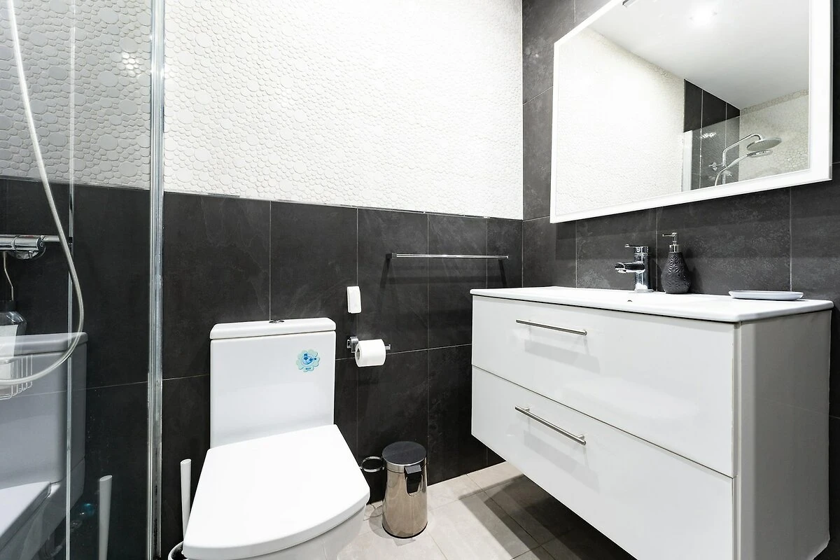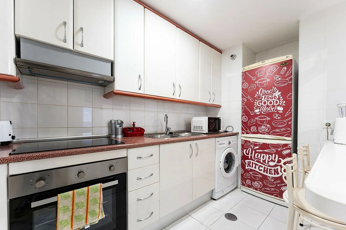 Keuken(waterkoker, broodrooster, koffiezetapparaat, oven, magnetron, koelkast, (), ()), woon/eetkamer(TV, eettafel, zithoek), slaapkamer(2-pers. bed), badkamer(douche, wastafel, toilet), Internettoegang, wasmachine, airconditioning, terras(privé), zwembad(gedeeld met andere gasten), lift
