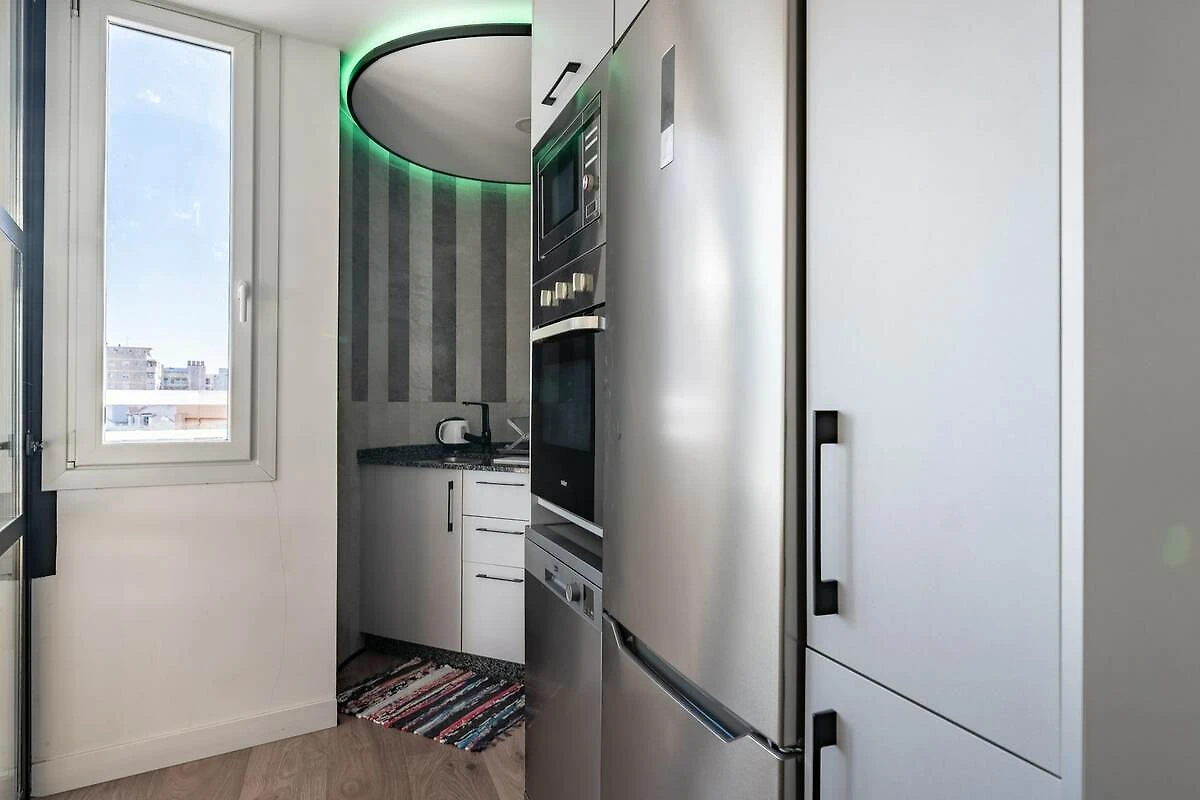 Open keuken(waterkoker, broodrooster, koffiezetapparaat, oven, magnetron, koel-/vriescombinatie, , ), woon/eetkamer(TV, eettafel, zithoek), slaapkamer(2-pers. bed), badkamer(douche, wastafel, toilet), Internettoegang, wasmachine, airconditioning, lift,