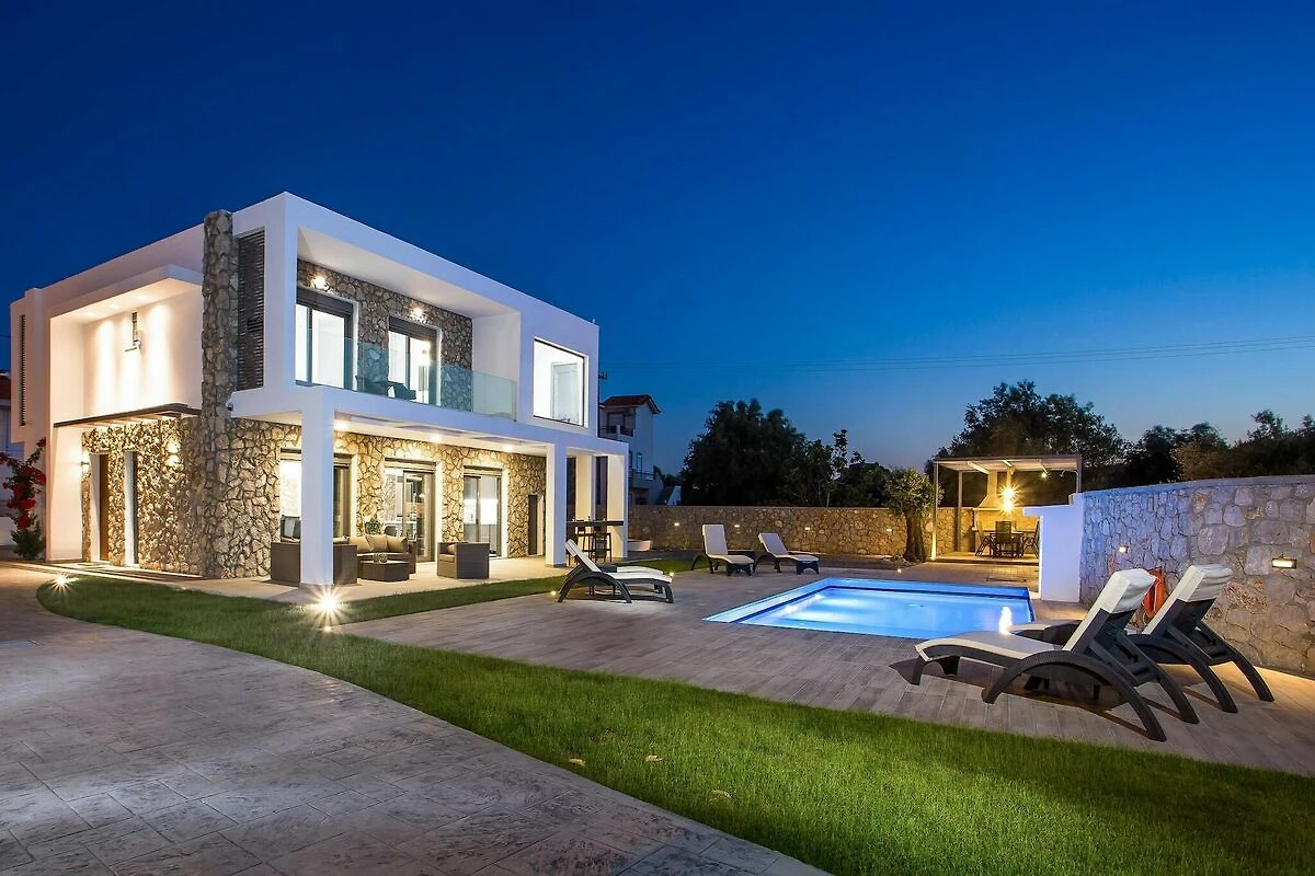 Deze nieuw gebouwde, moderne villa ligt in de rustige buitenwijken van Faliraki en Kalythies en biedt de perfecte mix van luxe, privacy en de charme van het eiland. Op slechts twee minuten rijden van enkele van de mooiste stranden van Rhodos — Traounou, Ladiko, Faliraki en de beroemde Anthony Quinn-baai — is de villa omgeven door 1360 m² weelderig terrein, omgeven door hoge muren die volledige afzondering en rust garanderen.