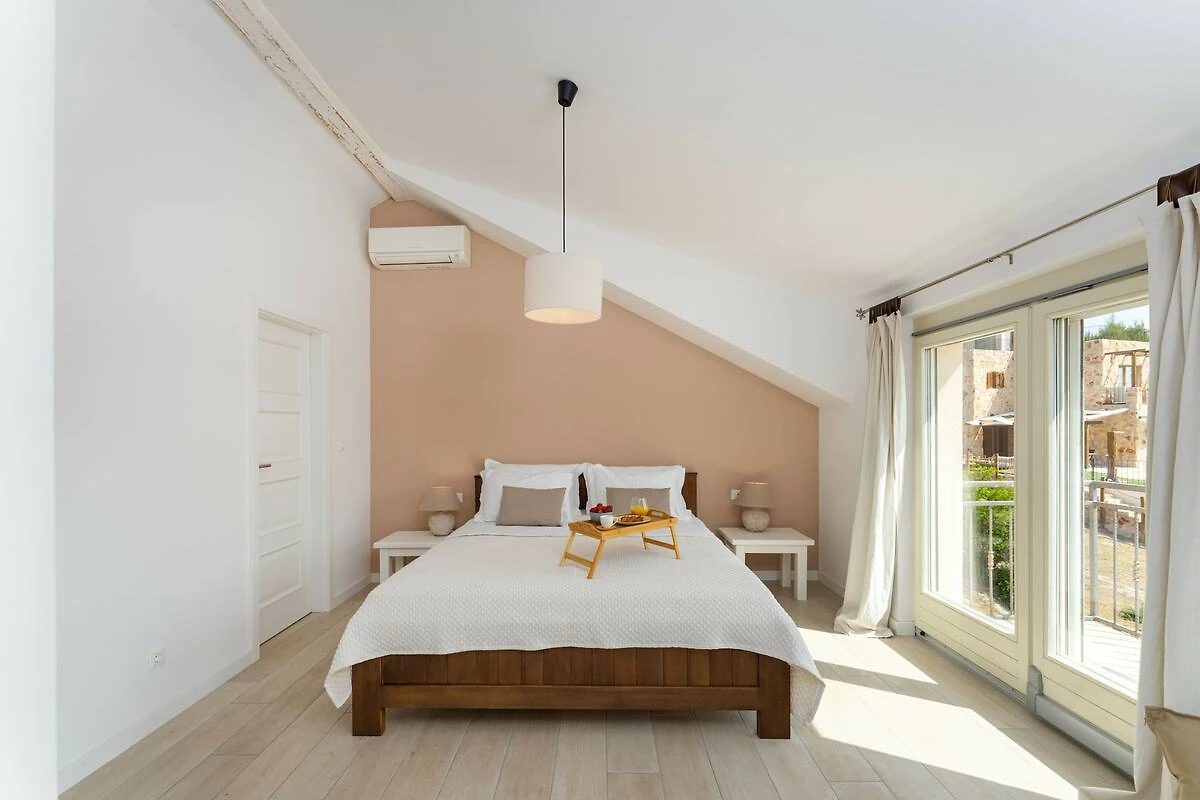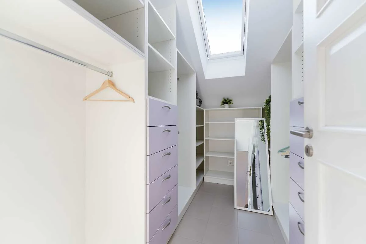 Het interieur is verdeeld over drie verdiepingen en combineert comfort met een modern design. De bovenverdieping omvat een master suite en een familieslaapkamer, terwijl de middelste verdieping gasten verwelkomt met een lichte woon- en eetkamer, een volledig uitgeruste open keuken en nog een slaapkamer met eigen badkamer. De benedenverdieping biedt een extra woonkamer, een keuken, een massageruimte, een slaapkamer en twee badkamers. Van hieruit hebben gasten direct toegang tot een overdekt terras met een zwembad met hydromassagefunctie, omgeven door ligstoelen, parasols en een weelderige tuin met fruitbomen en verse producten.