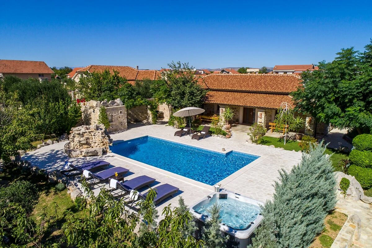 Villa Olea met privé verwarmd zwembad is een ruime vakantiewoning gelegen op het rustige platteland in de buurt van Šibenik, op slechts 15 km van het dichtstbijzijnde strand. Omgeven door natuur en dicht bij het Nationaal Park Krka, is het de perfecte plek voor een ontspannen vakantie met familie of vrienden. De villa biedt modern comfort en diverse voorzieningen, waaronder een privé verwarmd zwembad, een buitenjacuzzi, een fitnessruimte en een sauna, waardoor een onvergetelijk en verkwikkend verblijf voor maximaal 16 gasten gegarandeerd is.