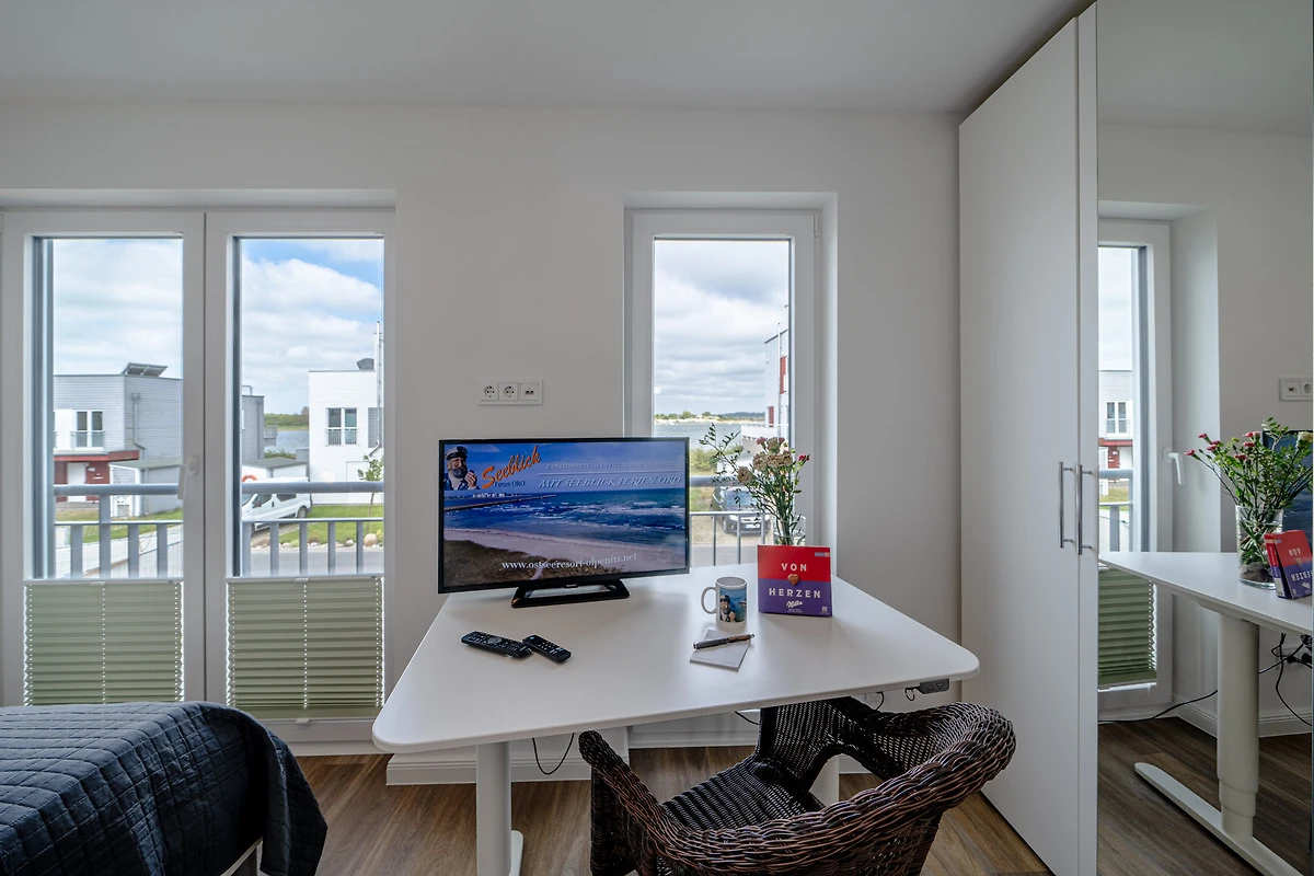 Wir waren das zweite Mal jetzt in Olpenitz Resort . Aussicht super, war schön morgens von der Sonne wachgeküsst zu werden . Die Fernseher in den Schlafzimmern waren schwer zu bedienen kein richtiges Fernsehprogramm und das WLAN war zwischendurch auch schwach .Ansonsten war die Einrichtung ausreichend alles vorhanden was man braucht .Ein Lob für die Spielesammlung . Wir werden wiederkommen Liebe Grüße Fam.Cavalcante