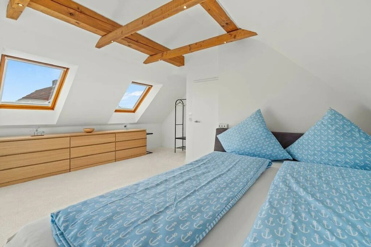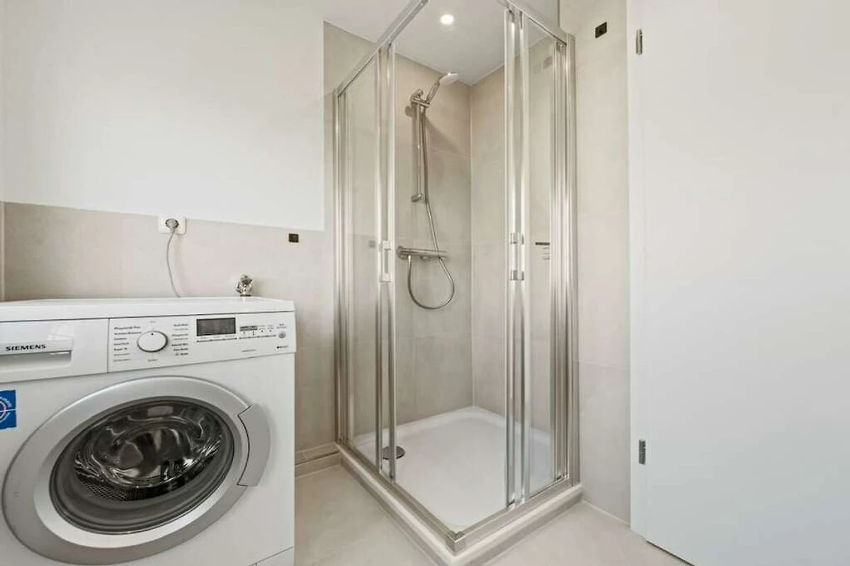 Op de 1e etage: (slaapkamer(, 2-pers. bed, TV, verwarming), slaapkamer(, 2-pers. bed, TV, verwarming, airconditioning), badkamer(, toilet, douche, wastafel, wasmachine, verwarming))