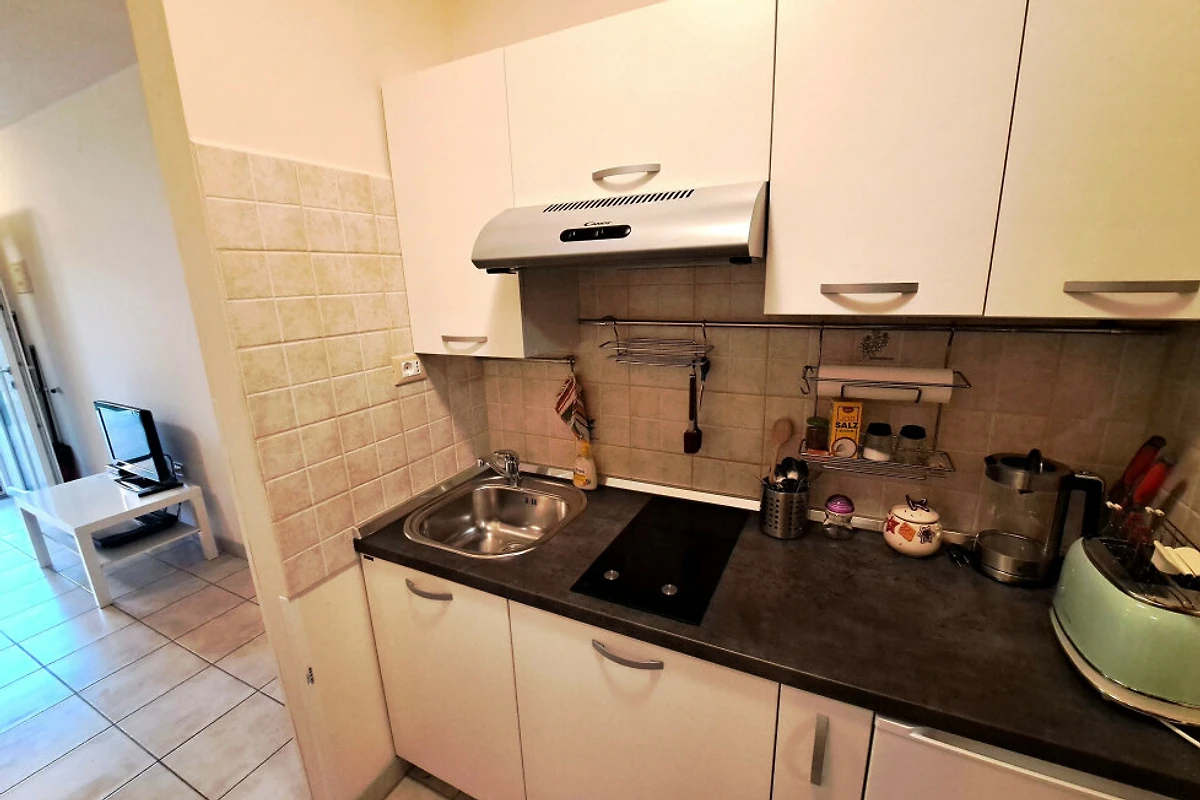De open keuken, met keramisch fornuis, is uitgerust met koelkast, magnetron, oven, vriezer, vaatwasmachine, servies/bestek, keukengerei, koffiezetapparaat en broodrooster.