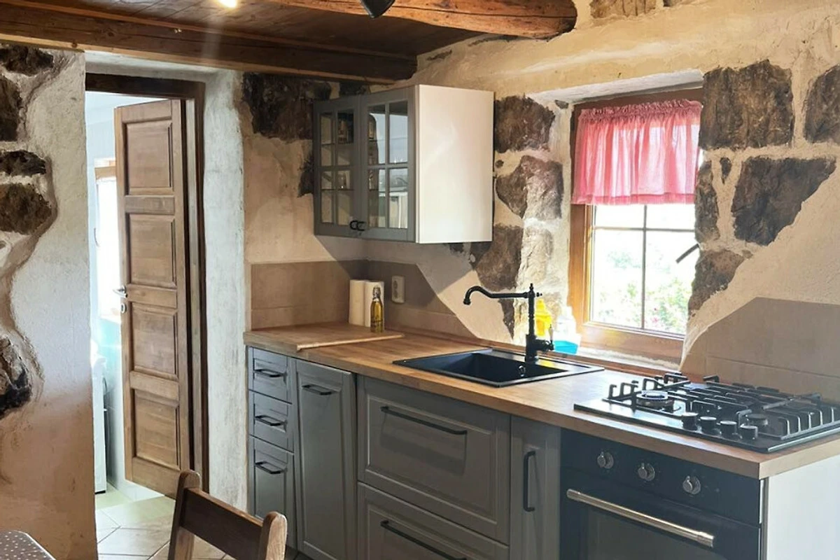 De open keuken, met gasfornuis, is uitgerust met koelkast, vriezer, servies/bestek, keukengerei, koffiezetapparaat en broodrooster.