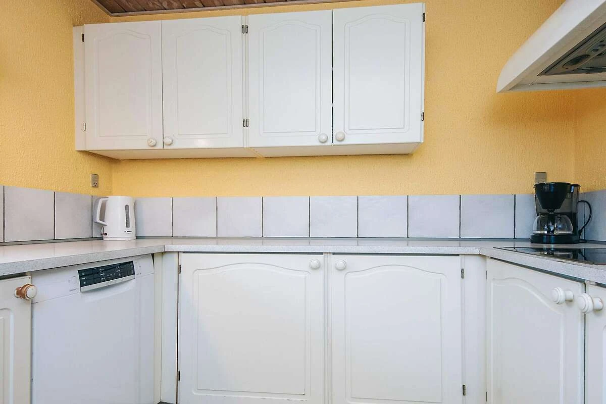 , keuken(fornuis(elektrisch), koffiezetapparaat, magnetron, afwasmachine, vriezer(1-59L), koel-/vriescombinatie), woon/slaapkamer(TV(duitse zender(s), Deense TV zenders (DR1 en TV2)), CD-speler, stereo-installatie), slaapkamer(2-pers. bed), slaapkamer(2-pers. bed), slaapkamer(2-pers. bed), slaapkamer(2x 1-pers. bed, 2x stapelbed), slaapkamer(2x 1-pers. bed), badkamer(wasdroger, wasbak, douche, toilet, wasmachine), badkamer(wasbak, douche, toilet), bubbelbad(in huis, verwarmd, 4 personen), sauna(in huis, 4 personen), balkon of terras, verwarming(elektrisch), tuin, tuinmeubilair, zwembad(in huis), lucht-lucht warmtepomp