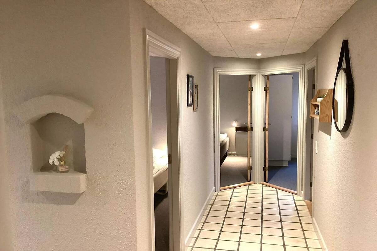 , keuken(fornuis(elektrisch), koffiezetapparaat, magnetron, afwasmachine, vriezer(1-59L), koel-/vriescombinatie), woon/slaapkamer(TV(duitse zender(s), Deense TV zenders (DR1 en TV2)), DVD-speler, stereo-installatie), slaapkamer(2-pers. bed), slaapkamer(2x 1-pers. bed, 2x stapelbed), slaapkamer(2-pers. bed), slaapkamer(2-pers. bed), slaapkamer(2x 1-pers. bed), badkamer(wasdroger, wasbak, douche, toilet, wasmachine), badkamer(wasbak, douche, toilet), bubbelbad(in huis, verwarmd, 4 personen), sauna(in huis, 4 personen), balkon of terras, verwarming(elektrisch), tuin, tuinmeubilair, zwembad(in huis), lucht-lucht warmtepomp