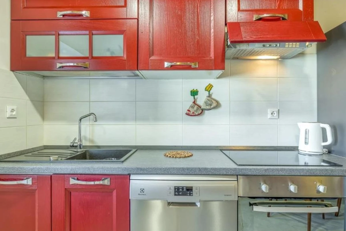 De open keuken, met keramisch fornuis, is uitgerust met koelkast, oven, vriezer, vaatwasmachine, servies/bestek, keukengerei, koffiezetapparaat en broodrooster.