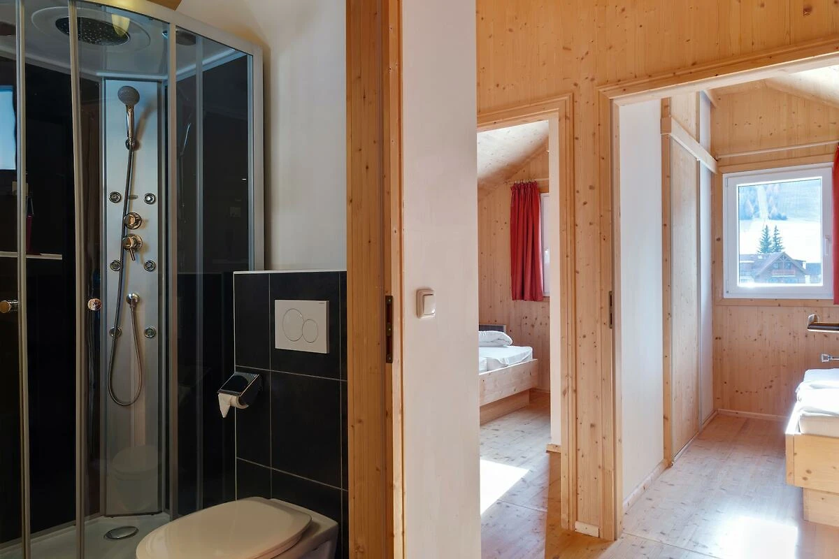 Wij mochten eerder in de chalet. De chalet was echter niet zoals wij het op de foto's en in de beschrijving op de website was weergegeven. De foto's zijn genomen toen de chalet er nog als één van de weinige stond. De chalets staan heel dicht op elkaar en van privacy is alleen sprake met de deuren, ramen en gordijnen dicht. Deuren en ramen dicht moest toch wel, want er was veel lawaai van de bouwactiviteiten rondom het huis, van de drukke doorgaande weg (dat begint om 04:30 al) en van de steen/grintweg naar de rest van het bergdorp. De chalet lag precies in de bocht aan het begin van die weg. Die weg liep ook aan de bergzijde direct naast het huis en ook hoger, waardoor voorbijgangers volle blik naar binnen hadden. Aan de bergzijde staan, in tegenstelling tot wat de foto's suggereren nu ook chalets, met volle blik de douche zonder gordijn in. Dat werd dus de hele vakantie een handdoek over het raam. De douche-afvoer was verstopt, de glazen douchedeuren kapot waardoor ze niet goed sloten. Het meubilair in de zitkamer heeft is versleten: donkerbruine flintertjes van de rugleuning van bank in onze nek en één stoel was door de slijtage zo vies geworden door gebruik dat we die niet hebben gebruikt om op te zitten. Die hebben we gebruikt om de doorgang naar de zijramen in de serre te blokkeren. Daar was namelijk op dat 2 een raam gesprongen door de hitte. Het bleek dat dit vorig jaar rond dezelfde tijd ook was gebeurd omdat bij de bouw het verkeerde type dubbel glas is gebruikt. Dat raam was wel al vervangen, maar de ramen ernaast nog niet, waarvan er nu dus één was gesprongen. Doodeng en gevaarlijk dus. Ook stak er een schroef uit de terrasdeur, wat een verwonding heeft veroorzaakt. Het terras was helemaal niet zo groot als op de foto's en ook het uitzicht klopte totaal niet meer. Aan alle kanten omringd door huizen met ramen en er vlak naast het terras van de buren. De keuken is compleet, maar erg onhandig ingedeeld. Vaak hoofden gestoten en regelmatig een stoel erbij halen voor gebruik en schoonmaken van de magnetron. De gratis wifi viel steeds uit en had weinig bandbreedte. Voor een gezin van 5 personen (allen 13+) en alleen Oostenrijkse tv was dit bijna een drama. De bedden waren smal en erg hard. Er lagen matrastoppers onder de lattenbodem met grote vellen met 'PRIVAT' erop. Kennelijk vinden de eigenaren zelf de matrassen ook te hard. Boven waren plinten los en een lamp in de huiskamer stond los op de voet. In de douche lag de bedrading los op het wastafelelement. De houten vloer zat onder de zwarte strepen en krassen en er was een gemeen scherpe overgang van de huiskamer naar aangebouwde serre. Wij hadden ook veel last van stofgruis van de weg vlak naast het huis en van de bouw rondom het huis, wat betekende dat extra medicatie nodig was en de ramen en deuren dicht moesten blijven. Maar dat waren ze al vanwege het lawaai... De provincie Steiermark is heel erg mooi en absoluut voor herhaling vatbaar, maar om hiervan te genieten moesten we bergdorp uit of boven uit het slaapkamerraam kijken om wat bergen te zien.