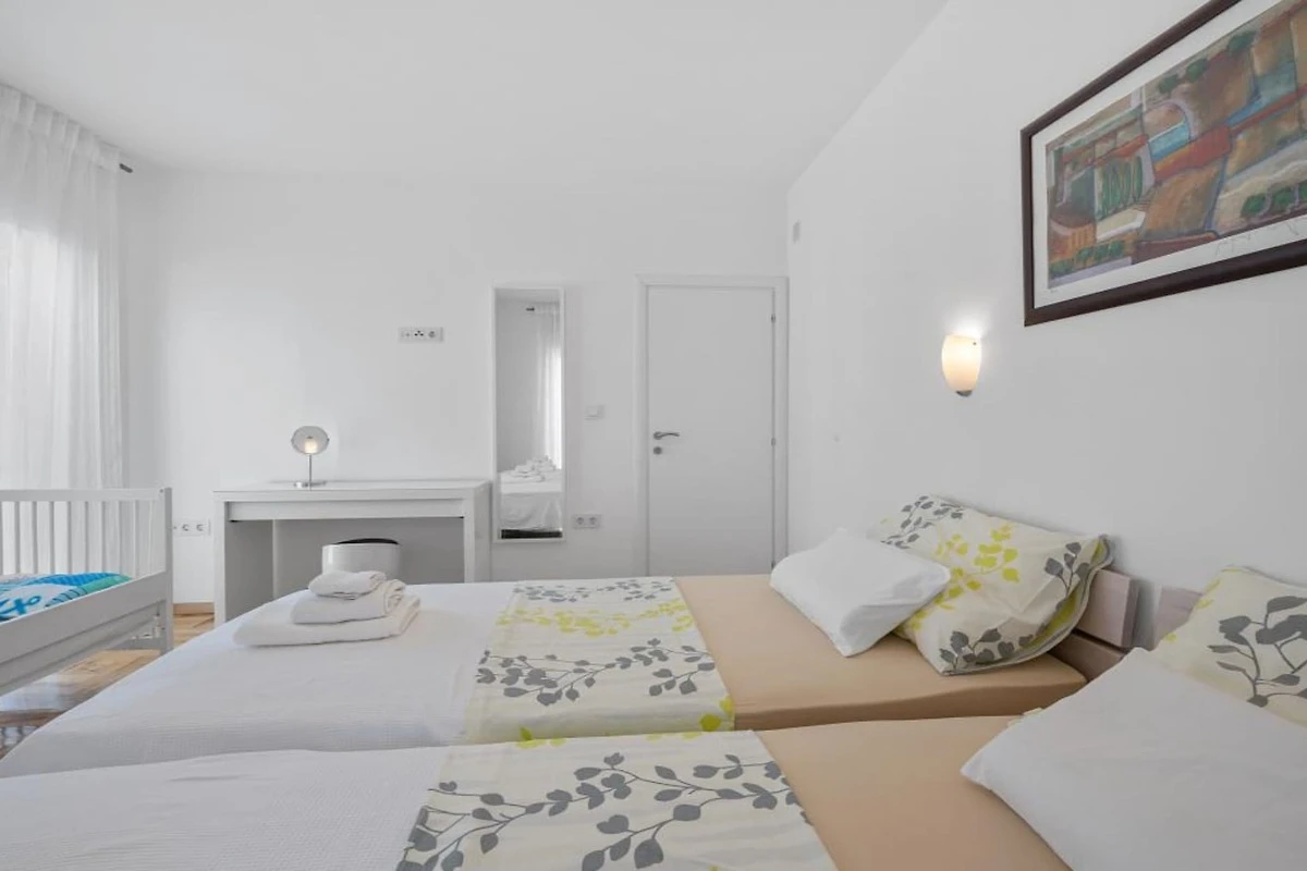 Villa Salvia Adriatica in Grebaštica, Šibenik-Knin County, Croatia, offers two spacious, luxury apartments with two bedrooms and bathrooms, a fully equipped kitchen, and a large living room. The property features a sun terrace, a covered balcony with scenic sea views, and access to a garden. Guests benefit from amenities such as air conditioning, free WiFi, free private parking, and proximity to the coastline, making it ideal for a relaxing vacation in Dalmatia.