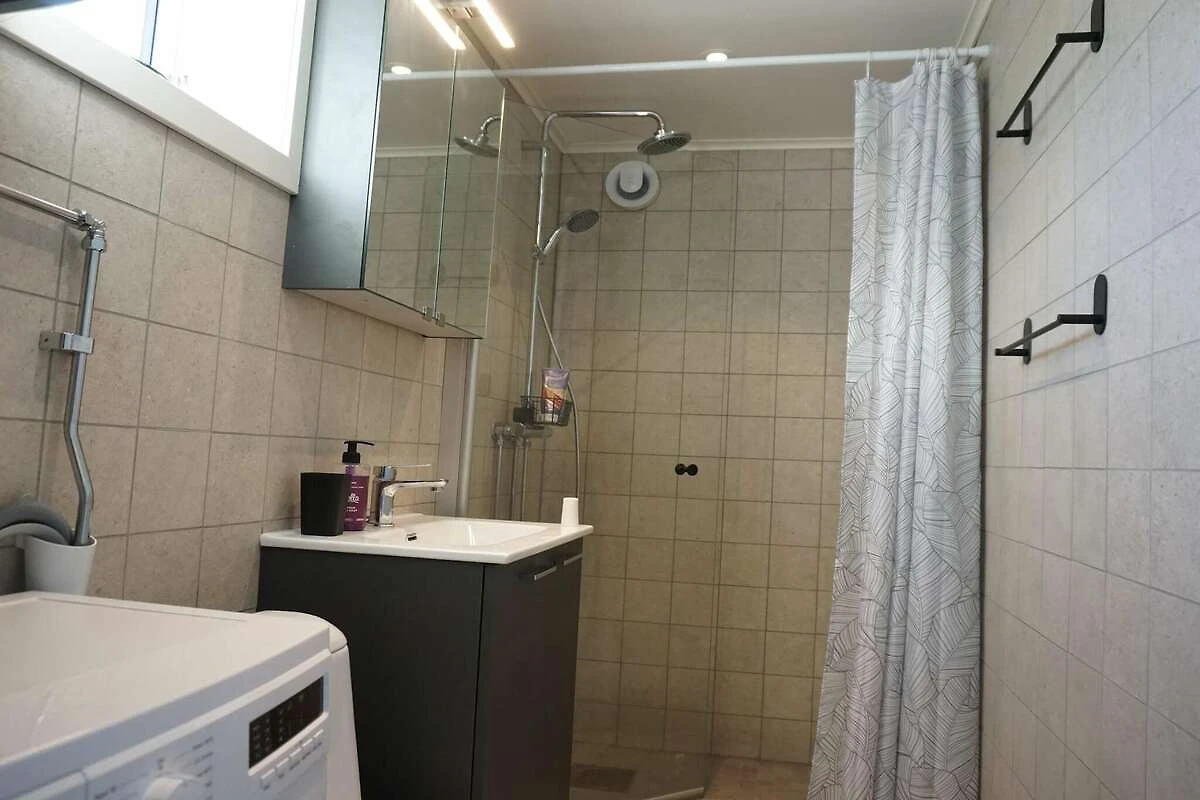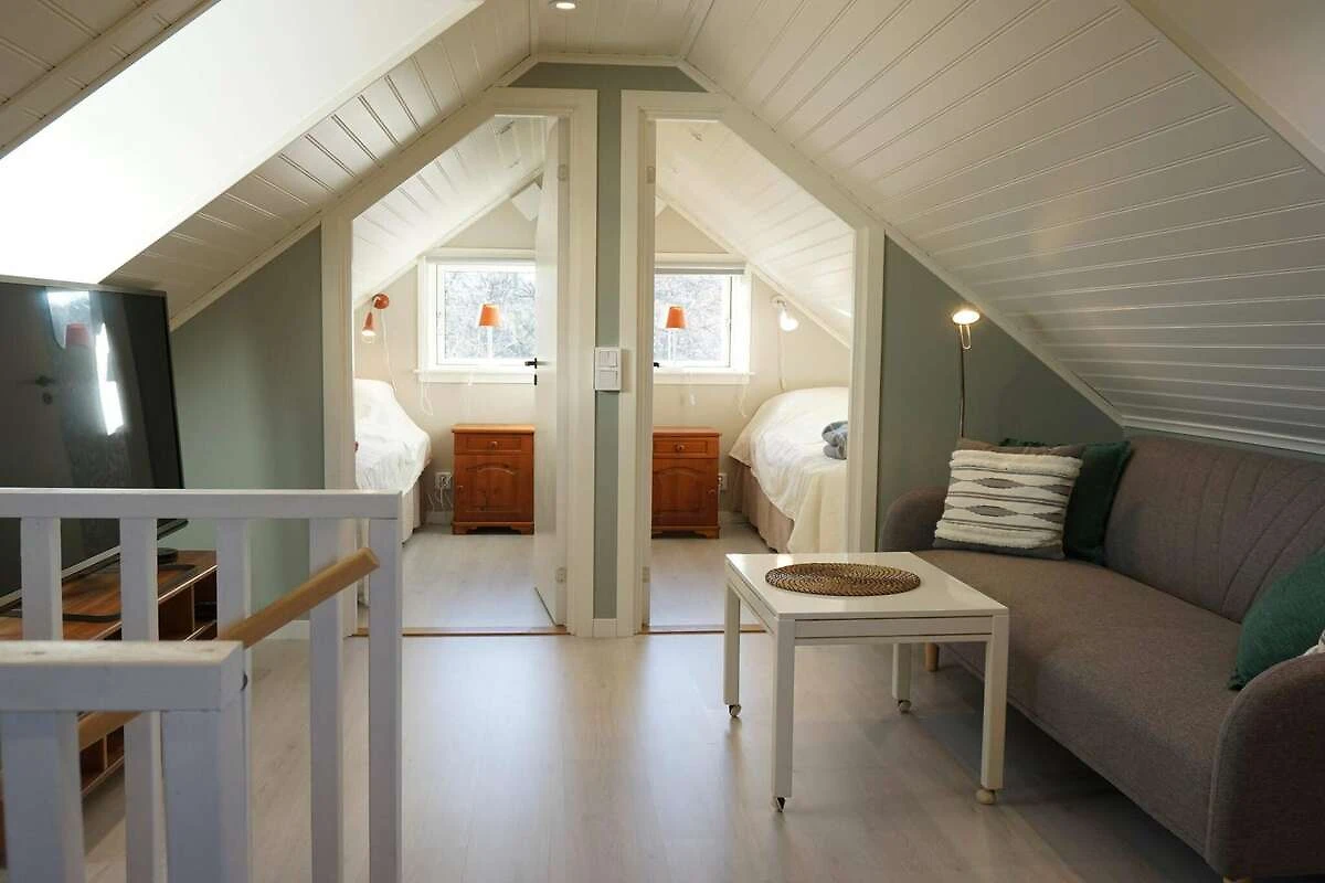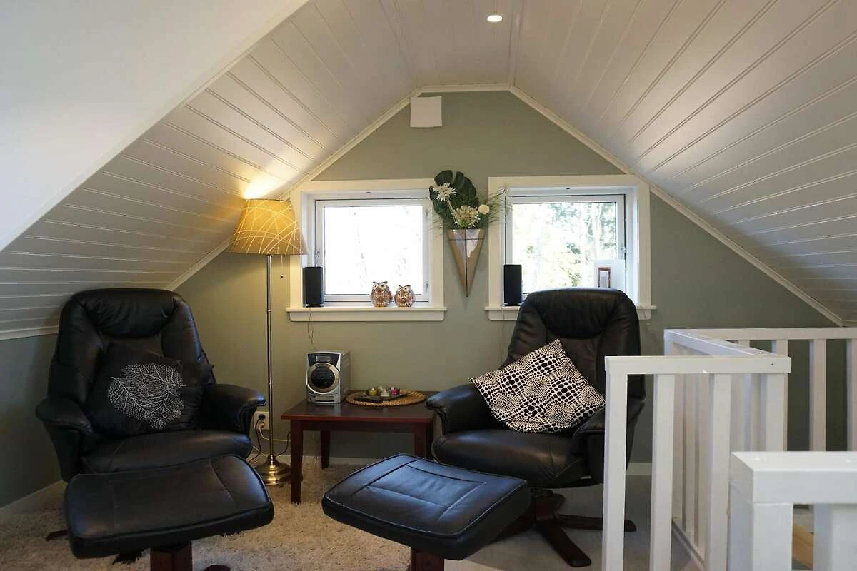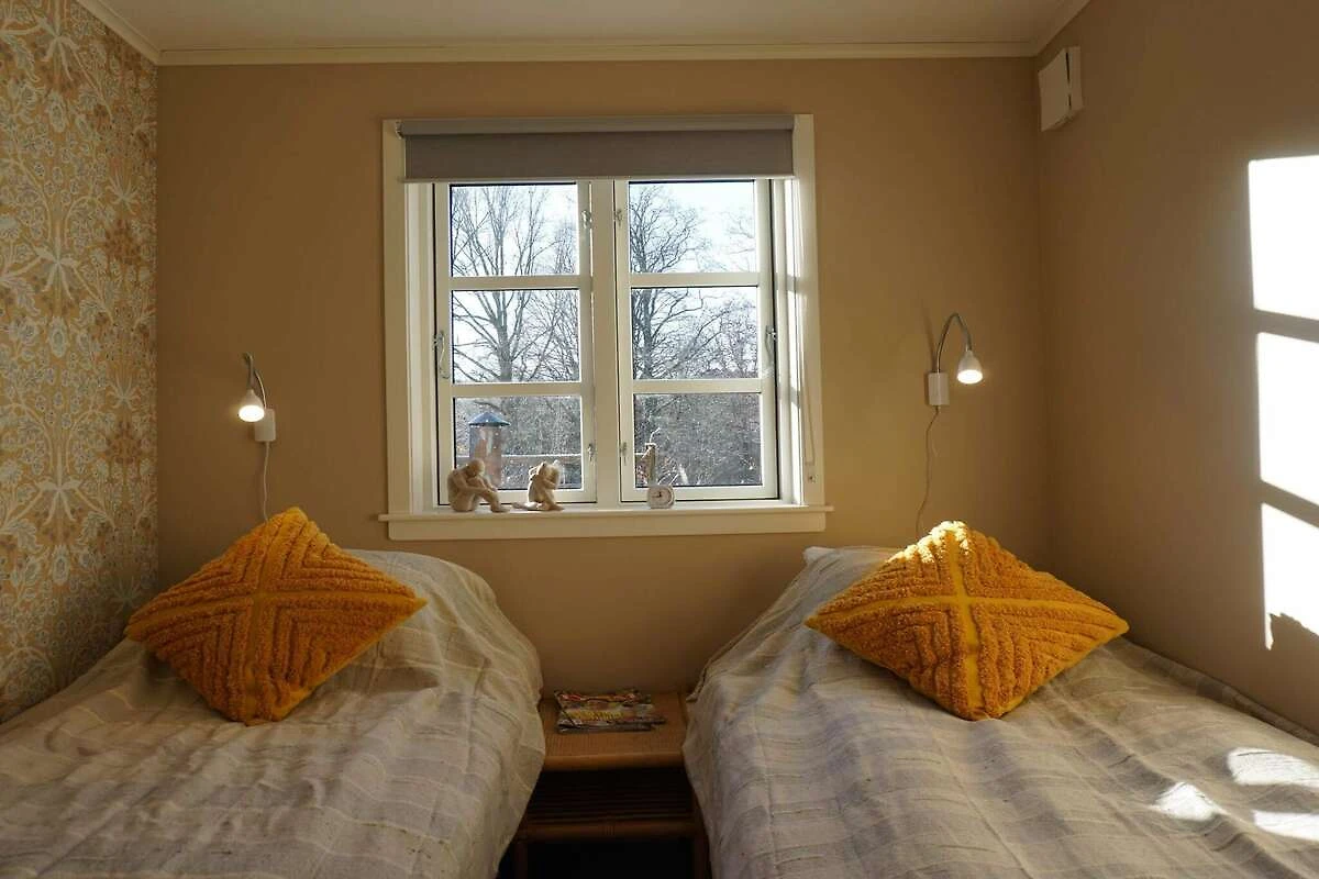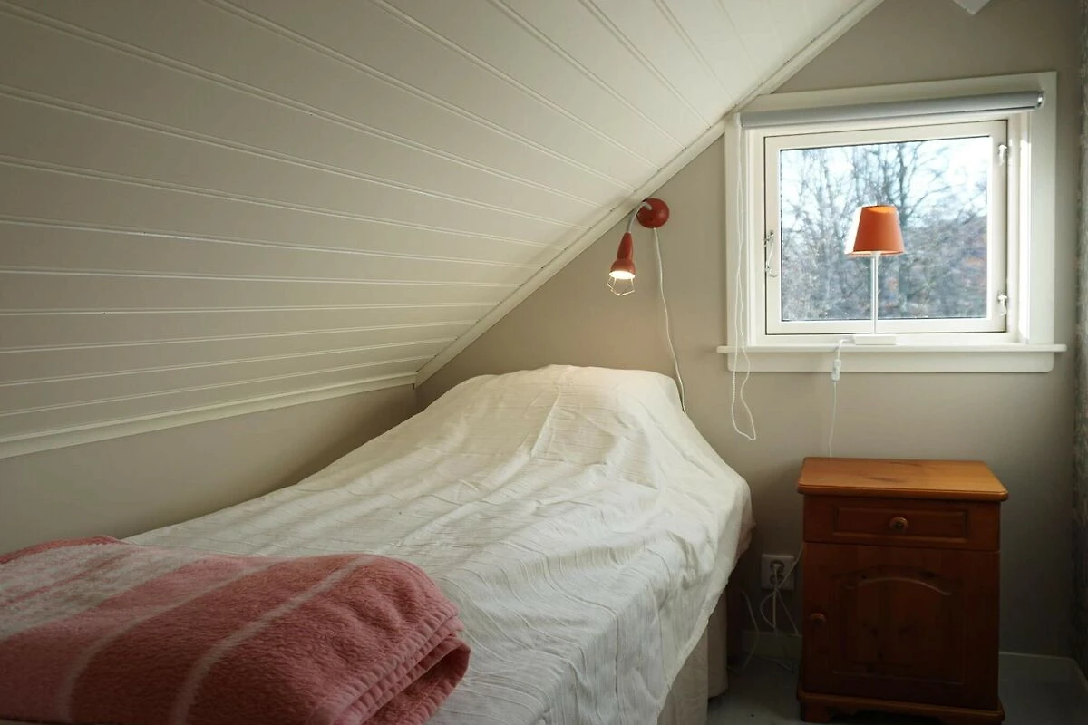 , keuken(fornuis(elektrisch), afzuigkap, koffiezetapparaat, magnetron, koel-/vriescombinatie, water uit de put), woon/slaapkamer(TV(noorse TV zenders (NRK en TV2), zweedse TV zenders), DVD-speler, CD-speler, chromecast), slaapkamer(2x 1-pers. bed), slaapkamer(1-pers. bed), slaapkamer(1-pers. bed), badkamer(vloerverwarming)(wasbak, douche, toilet, wasmachine), terras(tuinmeubilair), parking, aardwarmte, lucht-lucht warmtepomp