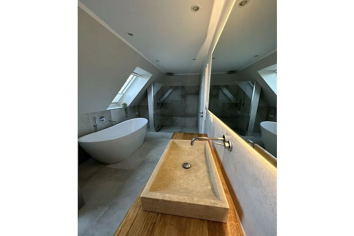 Op de 1e etage: (slaapkamer(, , 2-pers. bed, TV, ledikant, verwarming), slaapkamer(, , 2-pers. bed, 2-pers. bed, TV, verwarming), slaapkamer(, , stapelbed, stapelbed, verwarming), badkamer(, toilet, ligbad, ligbad, douche, douche, wastafel, verwarming))