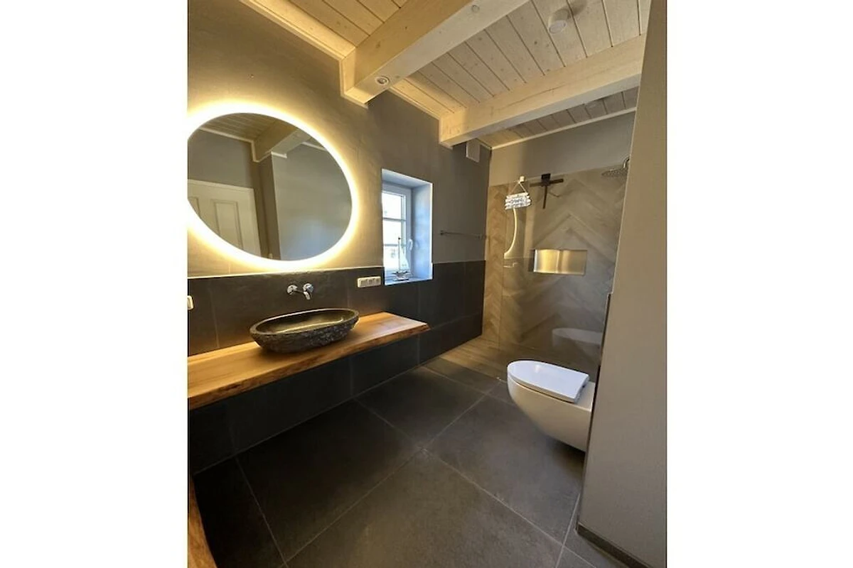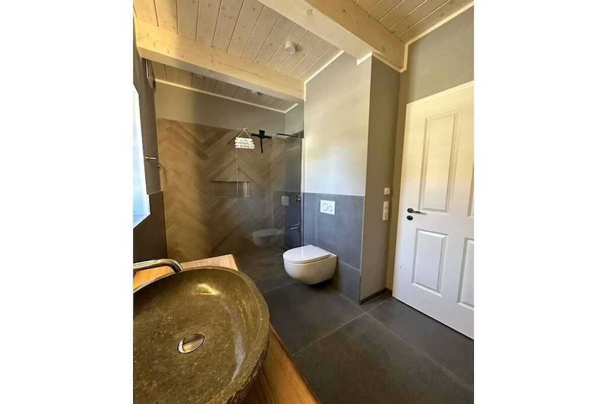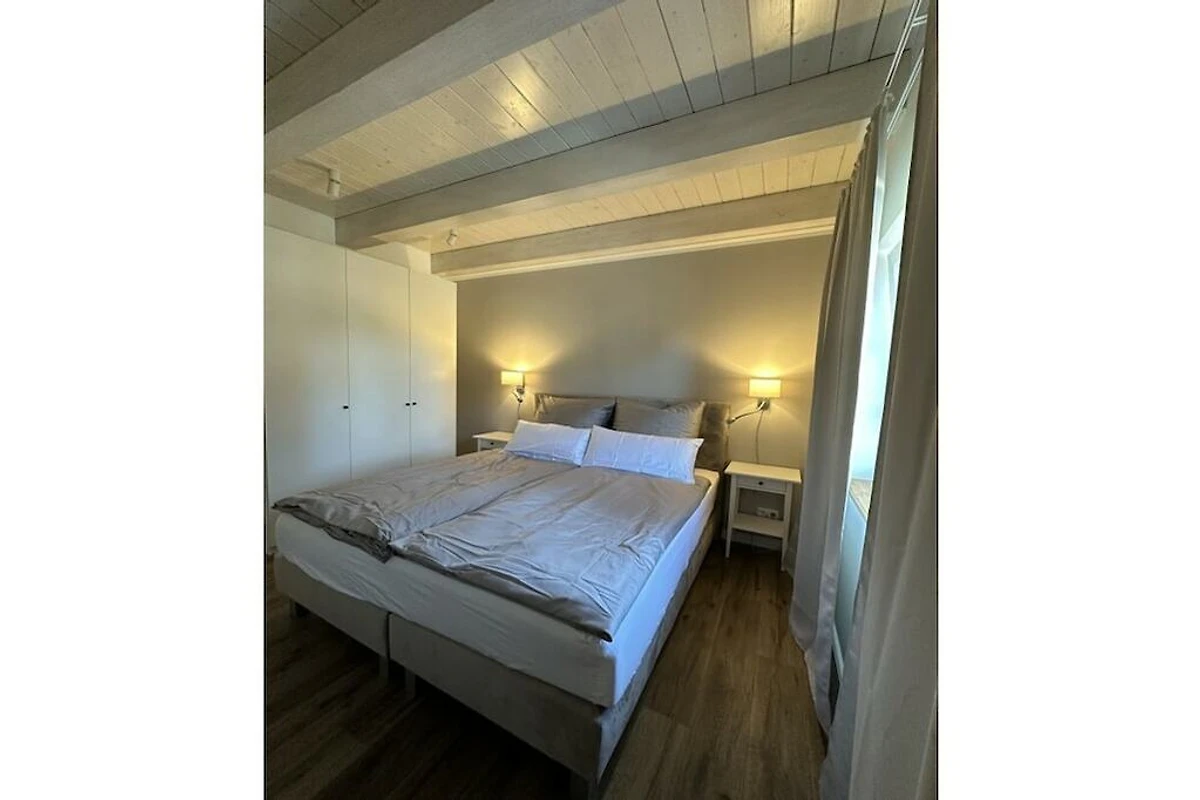 Parterre: (woon/eetkamer(, kitchenette, TV, eettafel, open haard, kookplaat, waterkoker, koffiezetapparaat, oven, magnetron, afwasmachine, koelkast, vriezer, verwarming, kinderstoel), slaapkamer(, , 2-pers. bed, 2-pers. bed, TV, verwarming), badkamer(, toilet, ligbad, douche, douche, wastafel, verwarming, haardroger), relaxruimte(sauna, outdoor shower))