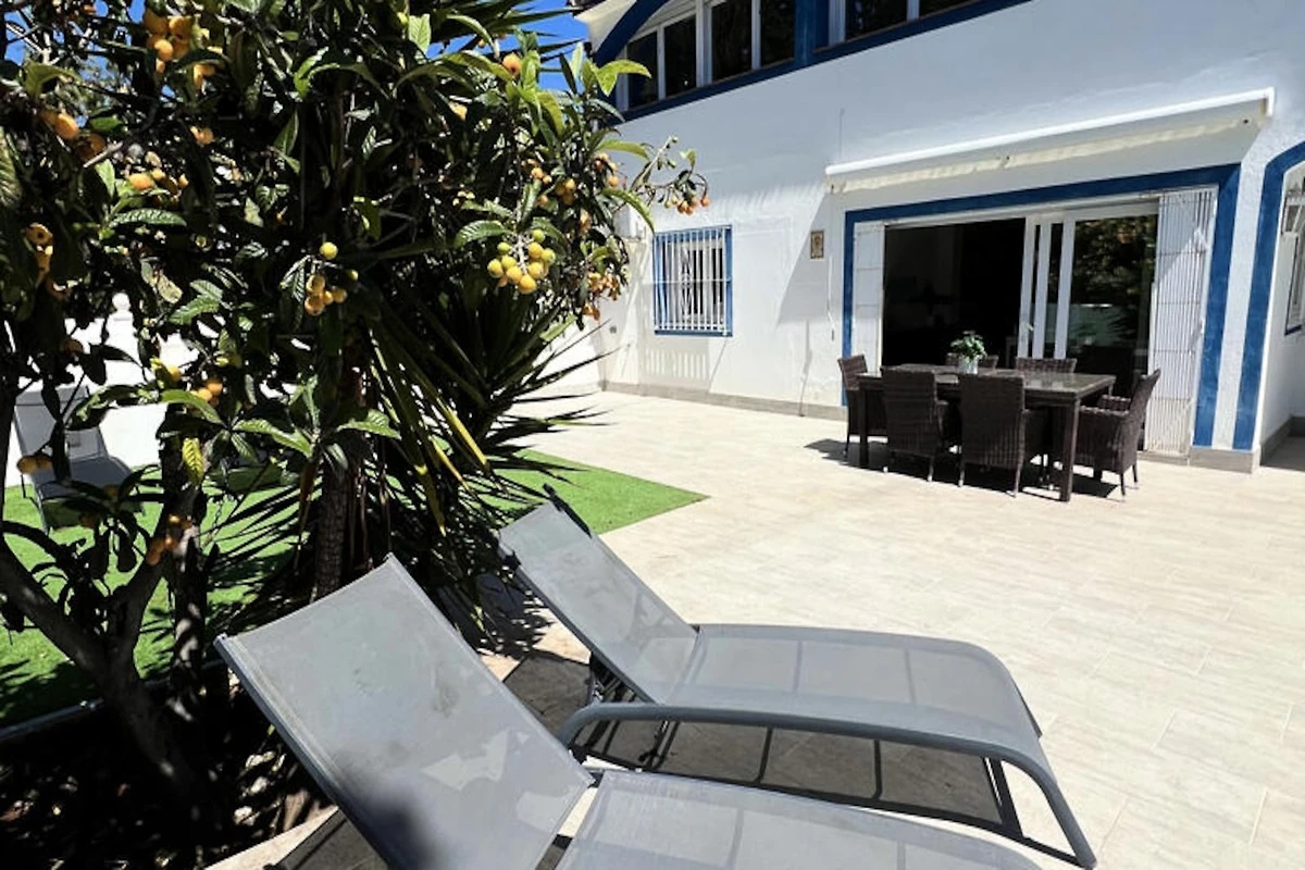 Buiten is de zorgvuldig onderhouden tuin een privéoase. Volgroeide fruitbomen voegen een vleugje natuurlijke schoonheid toe, terwijl het sprankelende zwembad uitnodigt tot een verfrissende duik. Het ruime terras, compleet met eet- en ontspanningsruimtes, is perfect om te genieten van het milde klimaat van Marbella. Een zomerkeuken op de begane grond maakt dineren in de buitenlucht een genot, of u nu geniet van een rustige maaltijd met het gezin of vrienden ontvangt.