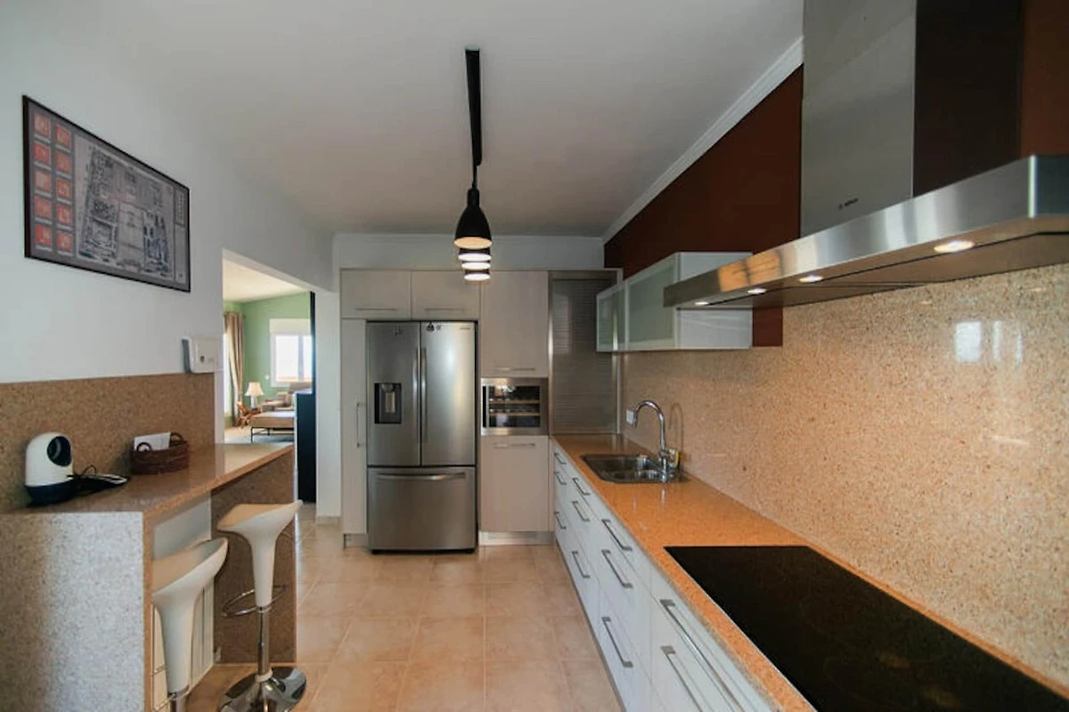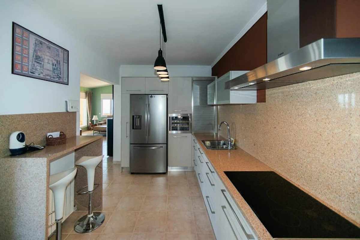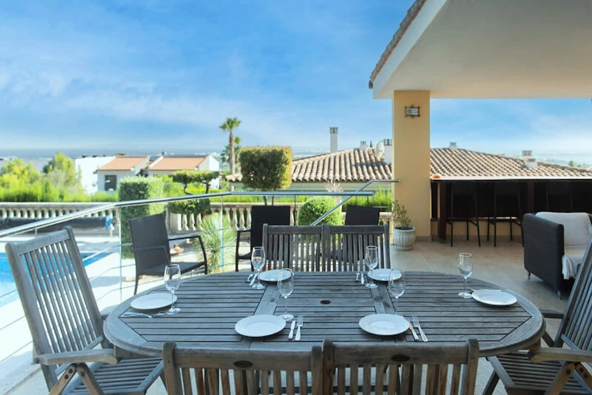 In het charmante dorpje Palau-Saverdera, aan de voet van het majestueuze Sierra de Verdera-gebergte, ligt een villa die luxe en ontspanning een nieuwe definitie geeft. Gelegen op een hoogte van 78 meter, is dit architectonische juweeltje van 240 vierkante meter omgeven door weelderige tuinen en een sprankelend turquoise zwembad. Het biedt een idyllisch toevluchtsoord voor maximaal tien gasten. Met een adembenemend uitzicht op zowel de zee als de bergen is deze villa de perfecte setting voor een onvergetelijke vakantie aan de pittoreske Costa Brava in Spanje. Stap binnen en word begroet door een ruime woonkamer waar zachte banken u uitnodigen om te ontspannen in koel comfort met airconditioning. De grote televisie zet de toon voor gezellige avonden met familie of vrienden. De villa beschikt over vijf ruime slaapkamers, elk met een comfortabel tweepersoonsbed voor een goede nachtrust. Drie strakke, moderne badkamers met inloopdouches zorgen voor een spa-achtige ervaring, waar u zich kunt verfrissen en verjongen na een dag vol ontdekkingen. De volledig uitgeruste keuken is een paradijs voor culinaire liefhebbers, compleet met alle benodigdheden om heerlijke maaltijden te bereiden. Of u nu binnen of buiten op het terras dineert, elke maaltijd wordt een onvergetelijke ervaring. Buiten nodigen het privézwembad en de lounge van de villa u uit om te genieten van de zon, een verfrissende duik te nemen of gewoon te ontspannen met een goed boek. Een beveiligde garage met voldoende parkeergelegenheid zorgt ervoor dat u zich geen zorgen hoeft te maken over uw auto. Palau-Saverdera biedt een heerlijke mix van rust en gemak. In de buurt vindt u charmante cafés en restaurants die lokale delicatessen serveren, evenals essentiële voorzieningen. De attente service van de villa, inclusief een badmeester en tuinman, zorgt ervoor dat elk detail van uw verblijf tot in de puntjes verzorgd is. Of u nu op zoek bent naar rust, een panoramisch uitzicht of een vleugje verwennerij, deze villa is uw toegangspoort tot een droomvakantie aan de Costa Brava.