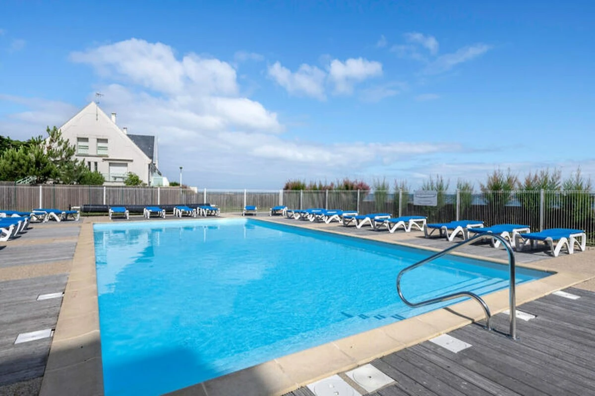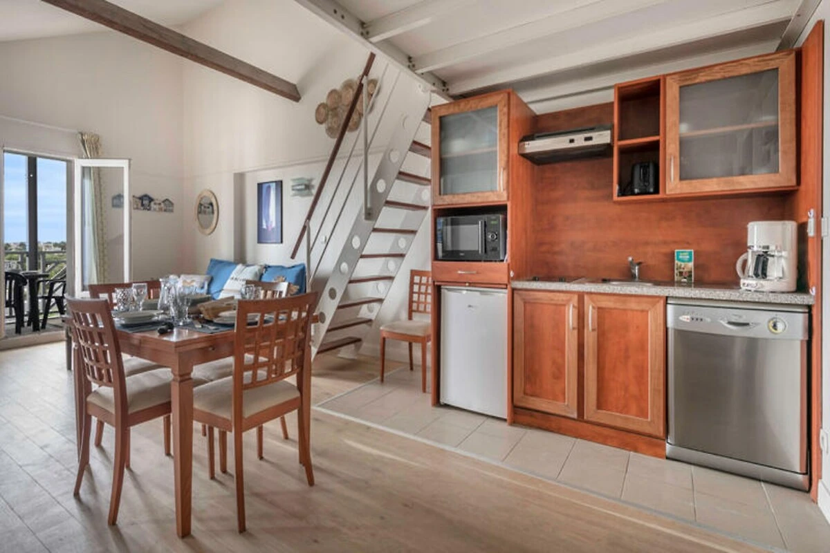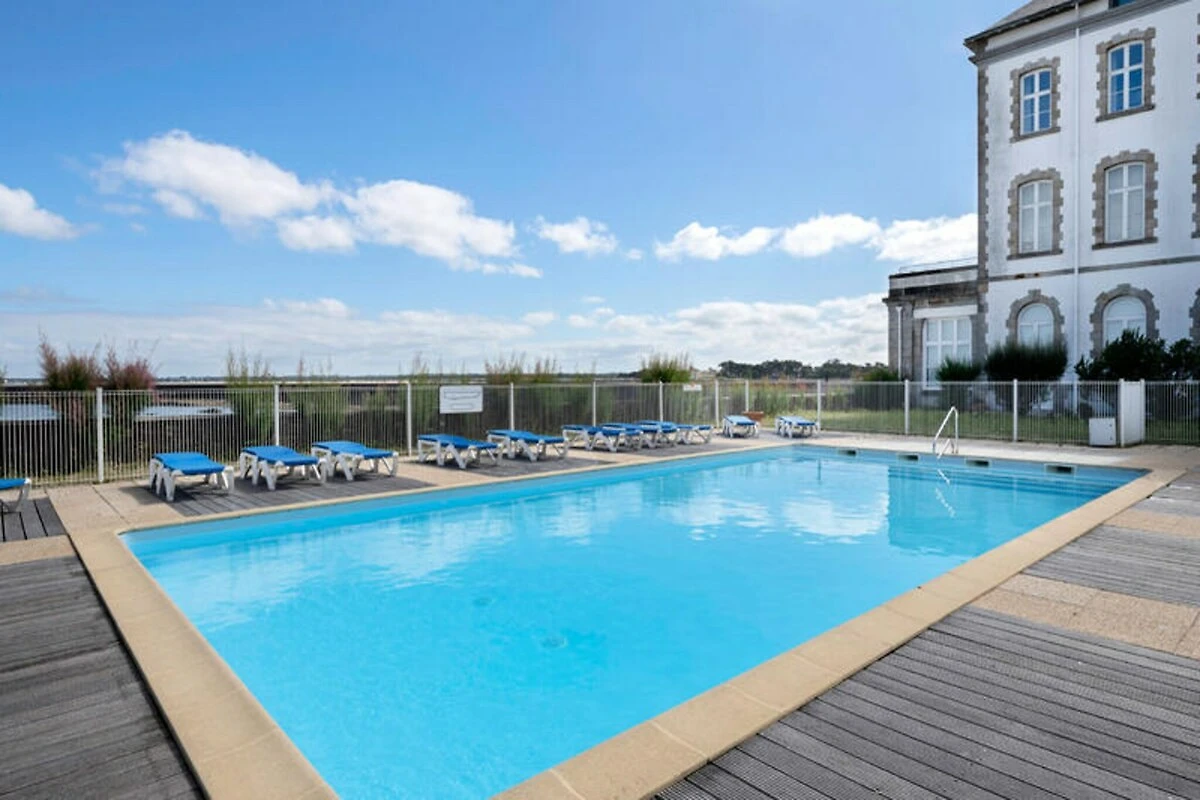 Waar de oceaan de horizon raakt, biedt dit charmante duplexappartement een serene ontsnapping met uitzicht op het pittoreske strand van St. Goustan. Perfect voor stellen of kleine gezinnen, combineert dit uitnodigende vakantiehuis de charme van de kust met modern comfort. Stelt u zich eens voor: wakker worden met het geluid van de golven, uw eigen balkon opstappen en genieten van het onbelemmerde uitzicht op zee – een omgeving die ontspanning en inspiratie belooft. Of u nu de voorkeur geeft aan een verfrissende duik in het onverwarmde zwembad van de residentie of een ontspannen wandeling langs het zandstrand op een steenworp afstand, deze locatie biedt voor elk wat wils. Binnen is het appartement zorgvuldig ontworpen voor maximaal vier gasten. De woonkamer verwelkomt u met zijn gezellige sfeer en biedt toegang tot het balkon voor momenten in de buitenlucht. De volledig uitgeruste keuken maakt het bereiden van maaltijden een genot, met een inductiekookplaat, magnetron/grill, vaatwasser en alle benodigdheden voor een stevig ontbijt. De eerste slaapkamer heeft twee eenpersoonsbedden, terwijl de mezzanine een tweepersoonsbed heeft in een ruimte met nautisch thema, wat een uniek tintje toevoegt aan uw verblijf. Moderne voorzieningen zoals een tv-lounge en een föhn zorgen voor comfort, terwijl de gereserveerde parkeerplaats en gedeelde fietsenstalling extra gemak bieden. \n\nAchter de residentie nodigt het charmante stadje Le Croisic uit tot ontdekkingstochten. Ontdek de grillige kliffen en verborgen baaien van de Wilde Kust, of ga noordwaarts naar de iconische zoutmoerassen voor rondleidingen. De nabijgelegen haven bruist van het leven en biedt restaurants, winkels en zomershuttles naar Belle-Île-en-Mer. Golfliefhebbers zullen de nabijheid van de Bluegreen Le Croisic golfbaan waarderen, terwijl fijnproevers zich kunnen uitleven met verse vis en regionale specialiteiten op de lokale markten. \n\nMet zijn mix van natuurlijke schoonheid, cultureel erfgoed en de charme van de kust is dit appartement uw toegangspoort tot een onvergetelijke vakantie op het schiereiland Guérande.