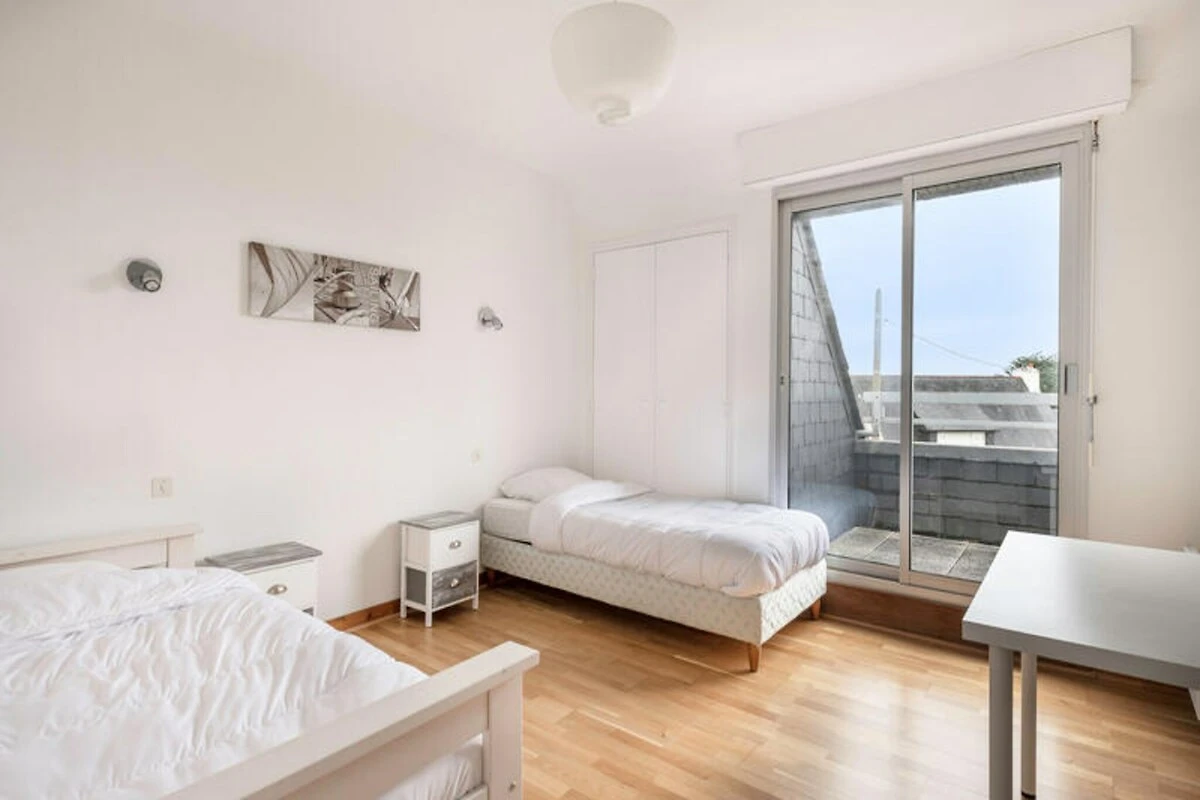 Waar land en zee elkaar ontmoeten, biedt Sarzeau een serene oase vol natuurlijke schoonheid en kustcharme. Dit heerlijke huis van 110 m² nodigt u uit om te ontspannen in een omgeving die modern comfort combineert met de rustgevende sfeer van de Bretonse regio Morbihan. Met gedeeltelijk uitzicht op zee en een smaakvolle inrichting is het de perfecte plek voor gezinnen of vrienden die op zoek zijn naar rust en avontuur. Stelt u zich eens voor hoe u 's ochtends koffie drinkt in de tuin, 's middags de nabijgelegen stranden verkent en 's avonds geniet van een barbecue onder de sterrenhemel. Dit huis is ontworpen om dierbare herinneringen te creëren. Binnen vindt u drie lichte slaapkamers die comfortabel plaats bieden aan maximaal zes gasten. De volledig uitgeruste keuken, met inductiekookplaten, een Senseo-koffiezetapparaat en een citruspers, maakt het bereiden van maaltijden een plezier. Moderne voorzieningen zoals een televisie, wasmachine, droger en strijkijzer zorgen voor gemak tijdens uw verblijf. Buiten biedt de tuin met tuinmeubilair en balkon een rustige plek om te ontspannen, terwijl parkeergelegenheid voor drie auto's praktisch is. Gelegen op slechts 400 meter van het strand van Kerfontaine en op 1 kilometer van de zandstranden van De Roaliguen, is het huis perfect gelegen voor avonturen aan zee. In de buurt vindt u restaurants zoals Côté Plage en L'Endroit, een Super U-supermarkt en de BlueGreen-golfbaan op slechts 8 kilometer afstand. Voor dagtochten ligt het treinstation van Vannes op 29 kilometer afstand en de luchthaven van Nantes is gemakkelijk te bereiken op 115 kilometer. Verken de wandelpaden, mountainbikeroutes en charmante dorpjes van de Golf van Morbihan voor een werkelijk meeslepende ervaring. Of u nu komt om te ontspannen of de omgeving te verkennen, deze accommodatie biedt het beste van de Bretonse kust. Met een conciërgeservice die u gedurende uw verblijf bijstaat, belooft uw vakantie in Sarzeau onvergetelijk te worden.