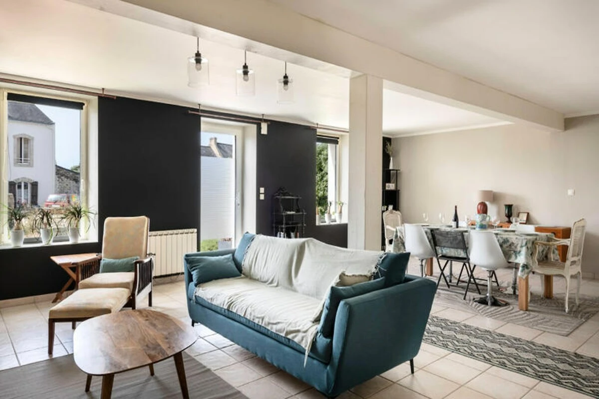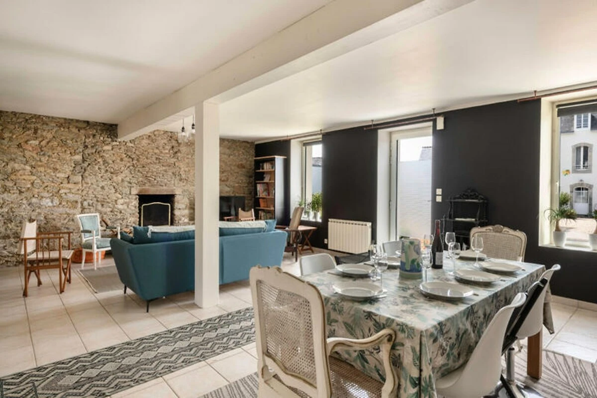 In het hart van Sarzeau, waar de charme van de Bretonse kustlijn samenkomt met de rust van het platteland, nodigt dit ruime huis van 135 m² u uit om te ontspannen en weer helemaal tot uzelf te komen. Met zijn mix van modern comfort en traditioneel karakter, inclusief stenen muren en een gezellige open haard, is dit huis de perfecte plek voor gezinnen of groepen tot acht personen die op zoek zijn naar een onvergetelijke vakantie. Of u nu koffie drinkt op het terras van 25 m² of geniet van een barbecue in de omheinde tuin, elk moment hier is ontworpen voor ontspanning en gezelligheid.