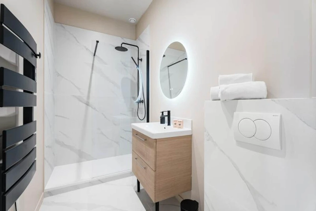 Dit prachtig ontworpen appartement van 53 m² combineert moderne elegantie met gezellig comfort. Het bevindt zich op de eerste verdieping van een karaktervol gebouw en biedt plaats aan maximaal vier gasten in twee ruime slaapkamers, elk met een comfortabel bed van 160 x 200 cm. De lichte woon- en eetkamer nodigt uit tot ontspanning, terwijl de volledig uitgeruste keuken alles in huis heeft om heerlijke maaltijden te bereiden. Extra voorzieningen zijn onder andere airconditioning, wifi, een flatscreen-tv en doordachte extra's zoals een wasmachine, een haardroger en natuurlijke toiletartikelen. Elk detail is zorgvuldig samengesteld om uw verblijf zo comfortabel mogelijk te maken.