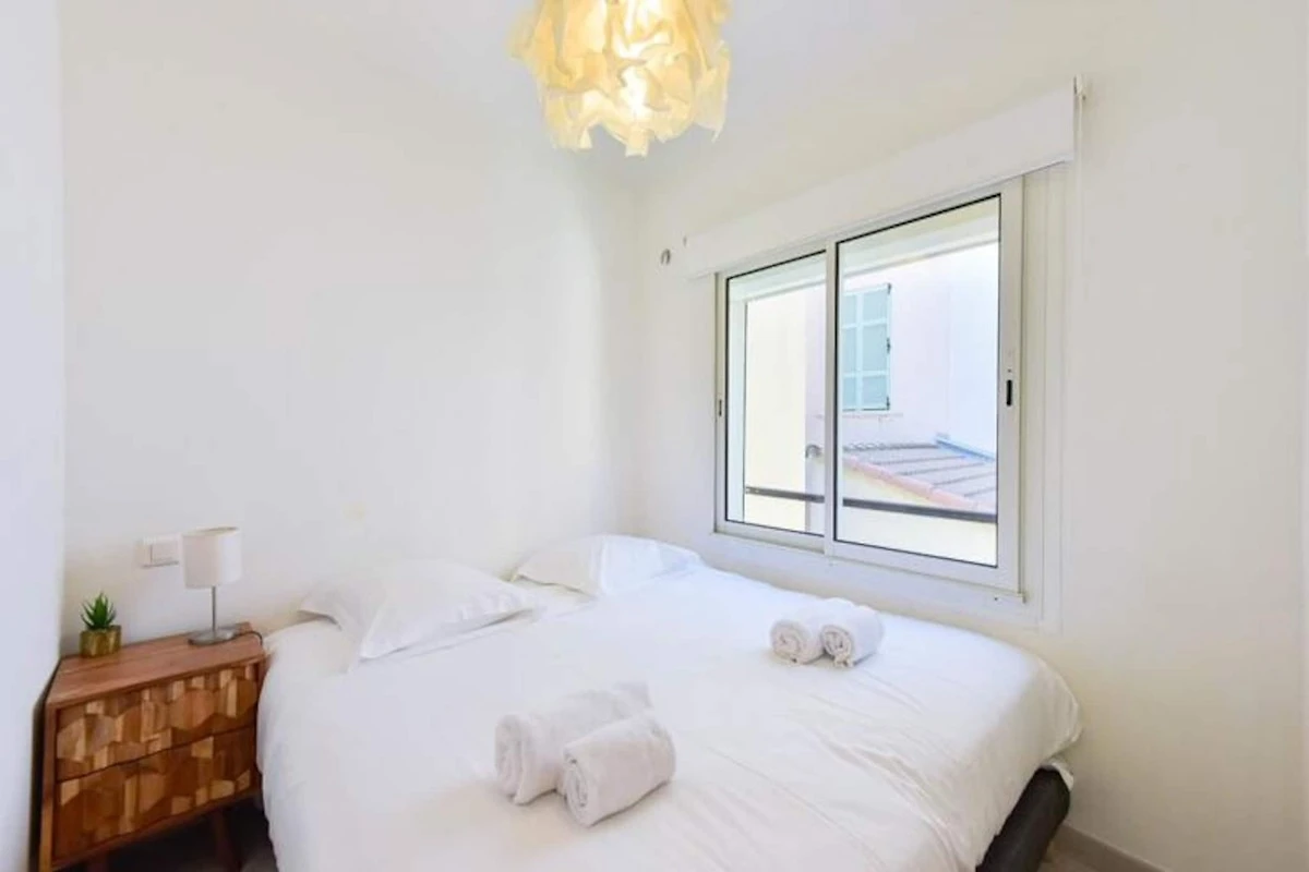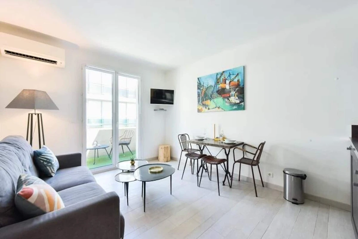 In het bruisende hart van Cannes, waar de glamour van de Croisette en de charme van de Rue d'Antibes samenkomen, biedt dit chique appartement van 30 m² een stijlvol toevluchtsoord voor reizigers die op zoek zijn naar de perfecte mix van comfort en gemak. Stelt u zich eens voor: wakker worden met gedeeltelijk uitzicht op zee vanaf uw eigen balkon, koffie drinken terwijl de stad onder u tot leven komt en de iconische wijk Carré d'Or verkennen, op slechts een steenworp afstand van uw huis. Of u nu voor zaken of plezier komt, dit appartement belooft een autovrije ontsnapping op een van de meest gewilde locaties in Cannes. Het interieur is een heerlijke mix van bohemian elegantie en modern comfort, wat een gastvrije sfeer creëert die aanvoelt als thuis. De woonkamer, met een comfortabele slaapbank en een eethoek voor drie personen, komt uit op het balkon en nodigt u uit om te genieten van de mediterrane bries. De vintage-geïnspireerde keuken is van alle gemakken voorzien, waardoor u gemakkelijk uw favoriete maaltijden kunt bereiden. De slaapkamer is voorzien van een luxe queensize bed, voor een rustgevende nachtrust, terwijl de strakke badkamer de ruimte completeert met doordachte details. Snelle glasvezel-wifi en airconditioning in het hele appartement zorgen voor een zorgeloos en comfortabel verblijf. \n\nStap naar buiten en dompel uzelf onder in de levendige omgeving. Geniet van gebak, cocktails of verfijnde gerechten in nabijgelegen restaurants zoals Le Cirque of Café Hoche. Wandel langs de Croisette, bewonder luxe boetieks of ga naar het Palais des Festivals, allemaal op slechts enkele minuten van uw voordeur. Met conciërgediensten en dagelijkse benodigdheden is dit appartement perfect uitgerust voor conferenties of een zonovergoten vakantie in Cannes. \n\nKies dit charmante toevluchtsoord voor een onvergetelijk verblijf, waar elk detail is ontworpen om uw ervaring in de schitterende stad Cannes te verbeteren.