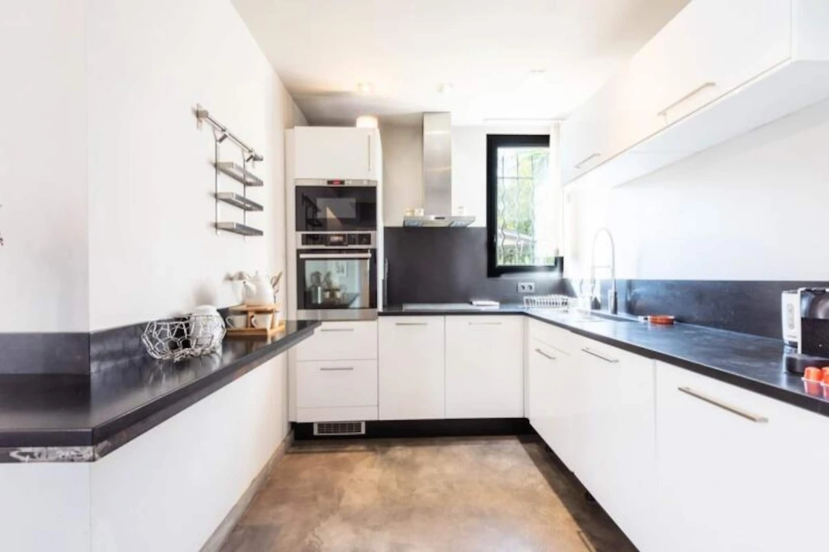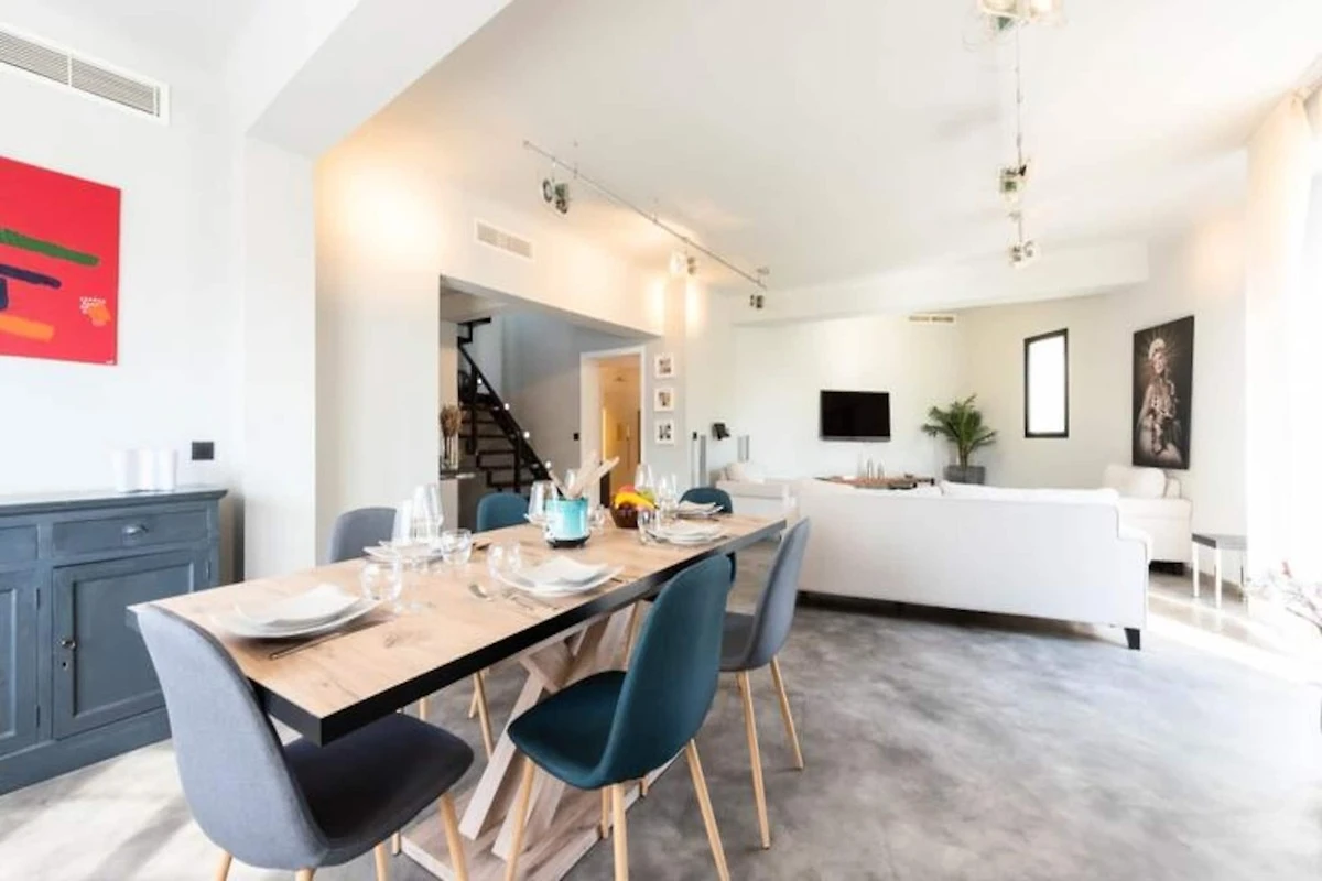 In het hart van het glamoureuze Cannes biedt deze prachtige duplex van 115 m² een serene oase op slechts een steenworp afstand van het bruisende stadscentrum en de schitterende mediterrane stranden. Met zijn mix van moderne elegantie en tijdloze charme nodigt deze woning u uit om het beste van de Franse Rivièra in comfort en stijl te ervaren. Stelt u zich eens voor: wakker worden met het zachte zonlicht dat door uw balkon stroomt, de luxe boetieks van de Rue d'Antibes verkennen of slenteren over de iconische Croisette, allemaal op korte loopafstand. Binnen is het appartement zorgvuldig ontworpen om aan al uw wensen te voldoen. De ruime woon- en eetkamer, compleet met een smart-tv en luxe zitplaatsen voor zes personen, creëert de perfecte ruimte om te ontspannen of gasten te ontvangen. De open keuken is van alle gemakken voorzien, waardoor u gemakkelijk maaltijden kunt bereiden met verse lokale ingrediënten. De master suite op de begane grond beschikt over een queensize bed, een grote kleedkamer en een open badkamer, wat een oase van rust biedt. Boven bieden twee extra slaapkamers met een eigen badkamer en queensize bedden voldoende ruimte en privacy voor gasten. Het appartement is volledig voorzien van airconditioning, voor optimaal comfort tijdens de warme dagen aan de Rivièra. Stap naar buiten en ontdek het beste van Cannes voor de deur. Van luxe winkels aan de Rue d'Antibes tot het goudgele zand van de Croisette, alles is binnen handbereik. Verken de historische wijk Suquet, geniet van restaurants van wereldklasse of bezoek evenementen in het Palais des Congrès, allemaal op slechts enkele minuten afstand. Met gratis parkeergelegenheid op straat en gemakkelijke toegang tot het treinstation van Cannes en de luchthaven Nice Côte d'Azur is deze accommodatie perfect gelegen voor zowel ontspanning als avontuur. Of u nu komt voor het filmfestival, een romantisch uitje of een familievakantie, deze duplex biedt een onvergetelijke uitvalsbasis om uzelf onder te dompelen in de allure van de Côte d'Azur. Laat u betoveren door de charme van Cannes en creëer herinneringen die een leven lang meegaan.