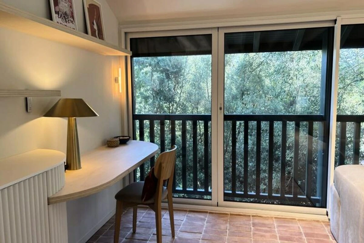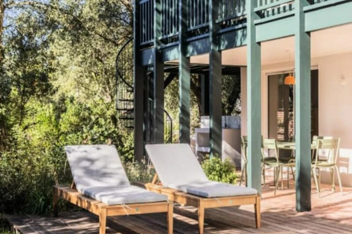 Het hart van het huis wordt gevormd door een lichte en uitnodigende woonkamer, compleet met een gezellige lounge, een eetkamer met een bank voor extra warmte en een keuken die is ingericht in zachte, rustgevende tinten. Stap naar buiten op het terras tussen de bomen, waar u op zwoele zomeravonden kunt genieten van verfrissende drankjes. Een tweede terras, dat intiemer is en bij het zwembad ligt, biedt een heerlijke ruimte om buiten te dineren met een grillplaat, perfect voor het creëren van onvergetelijke momenten met dierbaren.